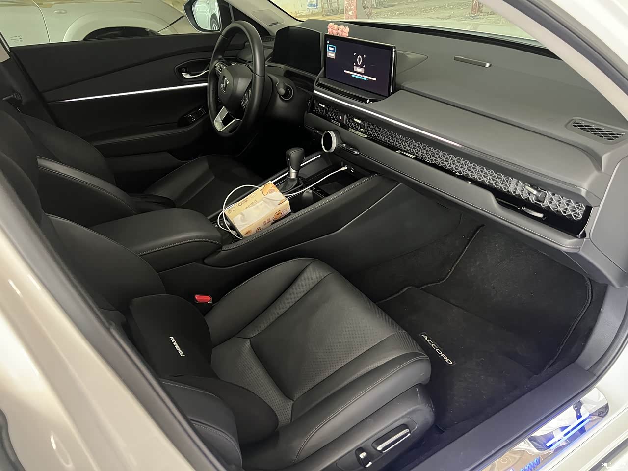 最让我满意的就是这个提车价了,这次算是没当冤大头。本田雅阁2025款运动系列尊贵版,格陵兰白这个颜色,最后落地谈下来19W左右,还免了两年还款的违约金。我是办的五年分期,打算两年后提前还清。又加了两千块钱,直接把膜都给贴了,还让店里改装了360影像,这一波操作感觉自己小赚了一笔,心里挺美。
