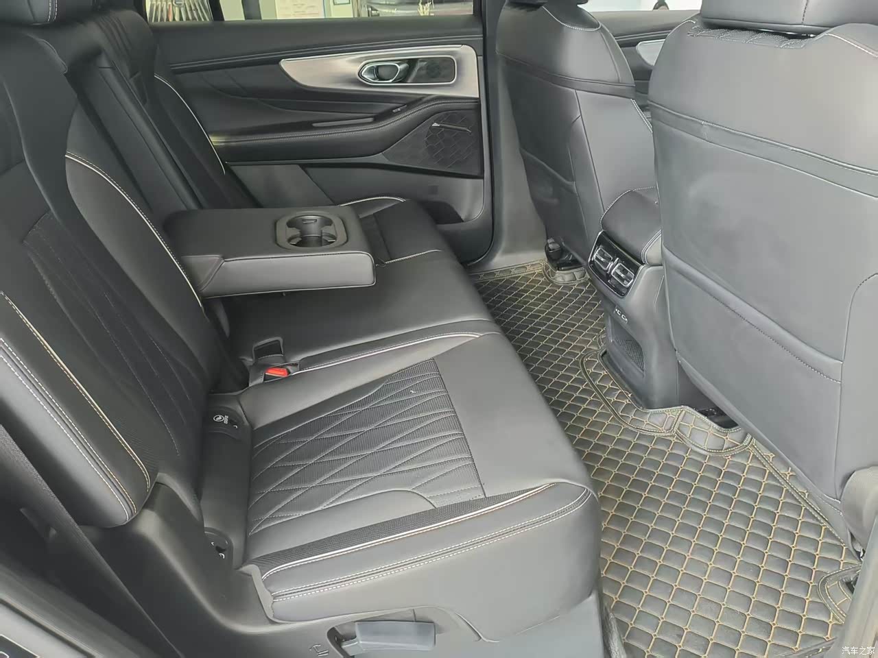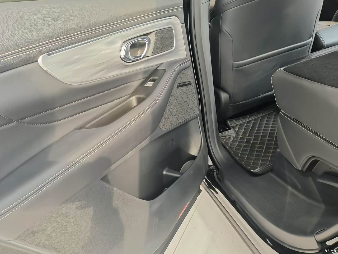 黑色内饰没啥特别出彩的地方,大面积软质包裹,32色氛围灯随意切换,配备的14.6英寸中控屏加12.3英寸仪表盘,屏幕看着就高级,操作也很丝滑,座椅有通风加热,冬暖夏凉啊,后排有独立出风口。
