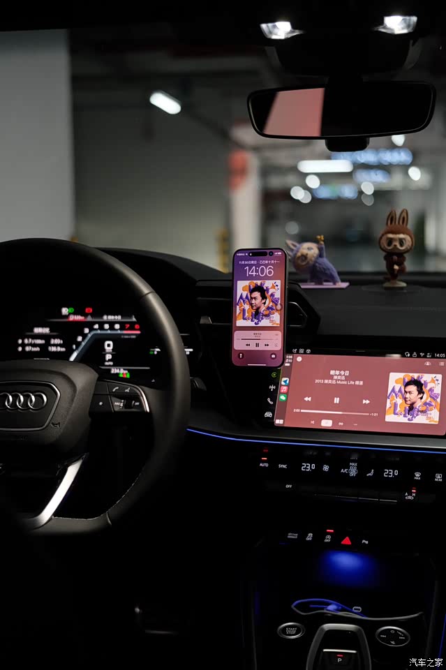 内饰的体验感完全超出预期,中控屏向主驾倾斜的设计特别人性化,操作起来很顺手;30色氛围灯夜晚点亮后,车内氛围感直接拉满,前排空调出风口能直吹面部,冬暖夏凉的实用性拉满。全液晶仪表盘显示清晰,无线CarPlay连接还特别稳定,完美弥补了原车车机的不足。