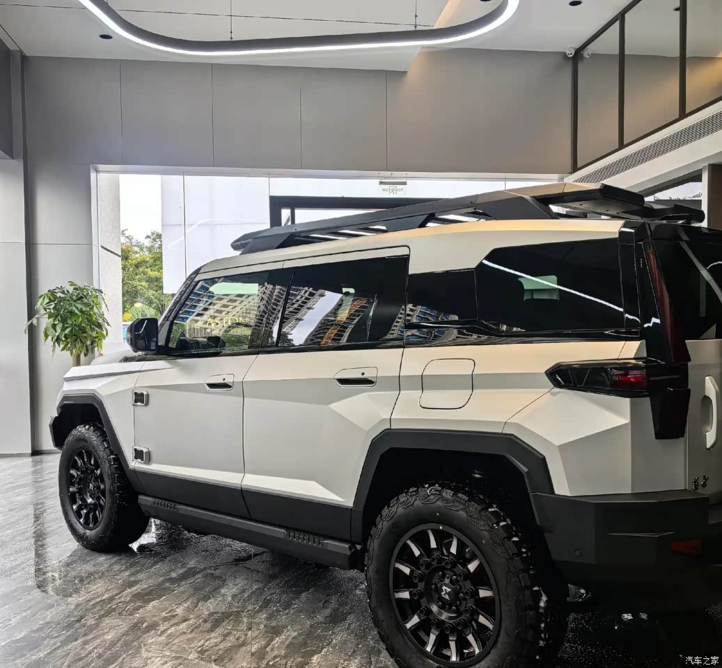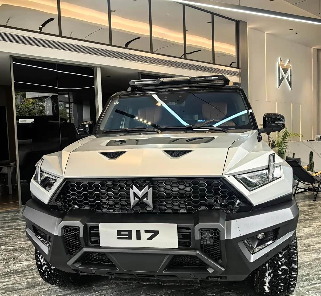 我是老张,一个越野爱好者,家里那台奥迪A6平时开着挺舒服,但一出去玩就露馅了——底盘低,四驱能力有限,遇到稍微野一点的路就怂了。从10月份开始,我铁了心要换台硬派越野车,坦克400、坦克700、BJ40、牧马人都看过了,各有优缺点,但总觉得差点意思。前几天刷抖音刷到了猛士917,觉得还可以,今天厂里没事,赶紧跑到广州当地的猛士4S店一探究竟。最满意的是外观造型,展车是白色的,车身线条硬朗规整,没有多余的花哨设计,硬派越野的气场很足,不管是停在那里还是开起来,都很有辨识度。