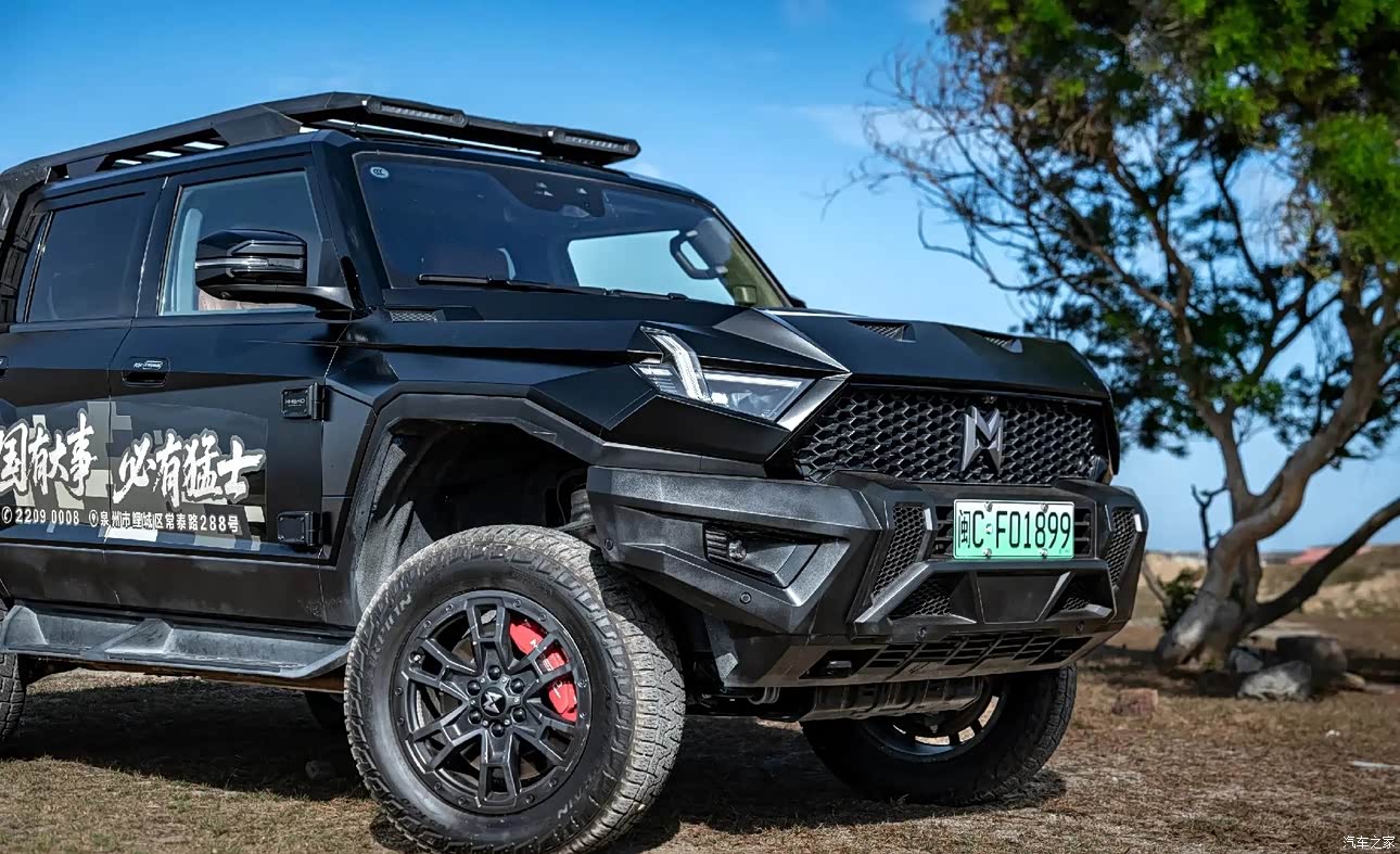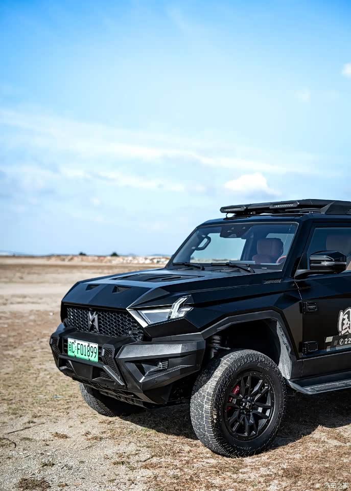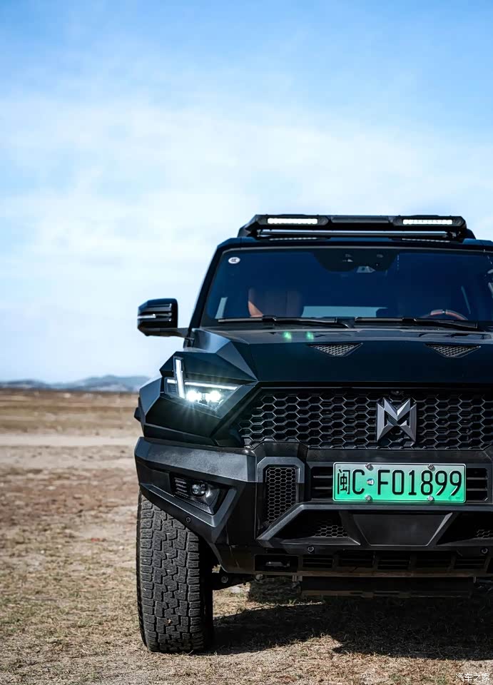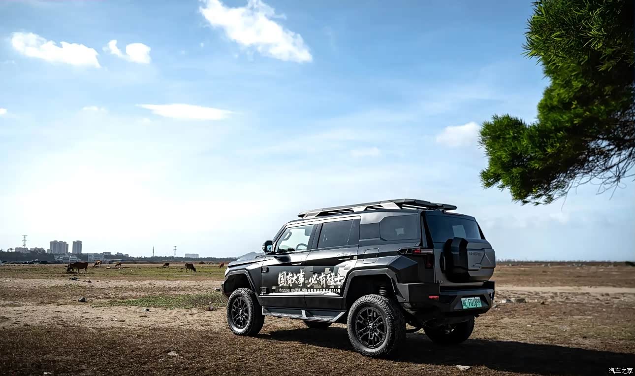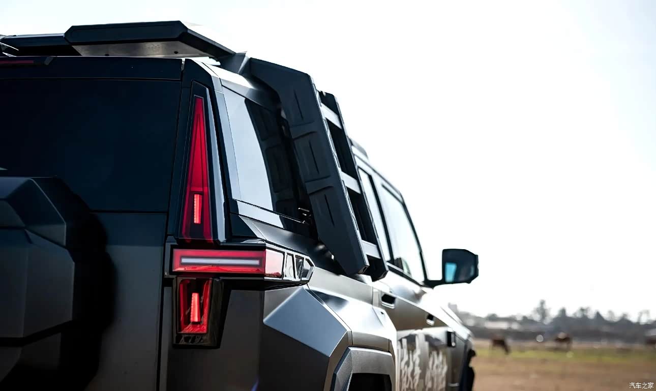 外观这东西见仁见智。我个人很喜欢这种机甲风的棱角,哑光黑的车漆也显质感,尤其是车头的格栅和大灯造型,一看就不好惹。但同行的朋友说太“直男”了,家用接孩子可能显得太凶,而且因为车身宽,小区里的侧方停车位基本别想停进去,只能找那种宽敞的车位。总结就是:越野玩家觉得帅,家用用户觉得累。