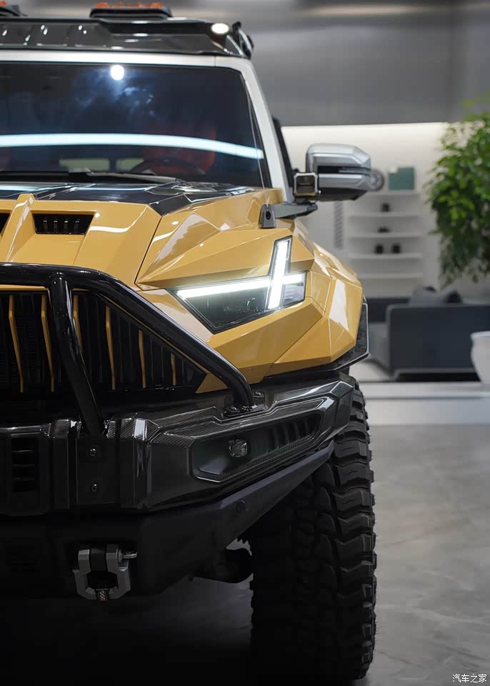 大家好,我是小肖。和老婆约定去新疆自驾的事,我们念叨了好久,今年终于攒够了时间和资金,决定来场说走就走的旅行。之前那台大众3系,跑短途还行,要是去新疆那种复杂路况,肯定撑不住,所以换车成了当务之急。老婆在网上刷到猛士917,说这车看着就适合长途越野,刚好周末有空,我们就直奔广州当地的4S店,来看这台猛士917增程蛟龙战甲版。最满意的地方,肯定是外观设计。这车摆在展厅里,一眼就能看出是硬派越野的路子,不像有些车,看着挺硬,细节上还是偏城市SUV。它的线条特别硬朗,方方正正的,轮眉往外凸得挺明显,搭配20寸的全地形轮胎,看着就很扎实。前脸的灯组设计也有辨识度,日间行车灯是“三道杠”的造型,晚上亮起来应该挺显眼。车身侧面的线条很简洁,没有多余的装饰,车尾的备胎罩是外挂式的,看着就很有越野范儿。我们俩站在车旁边看的时候,都觉得这车要是开去新疆,跑在草原或者戈壁上,肯定很搭。