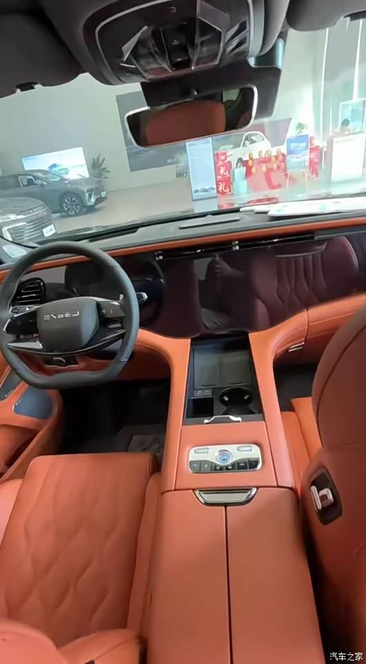 打开车门坐进车内,橙色的内饰豪华氛围营造得很到位,能摸到的地方基本都是软性材质包裹。但颜色亮眼的同时也需要勤加打理,感觉深色牛仔裤很容易在座椅上留下颜色。转眼就看到了大尺寸的三联屏,但真正让我有好感的是中控台实体按键的回归,操作空调等常用功能更直接,减少了误触。