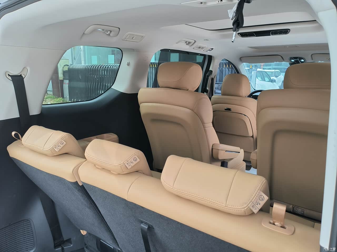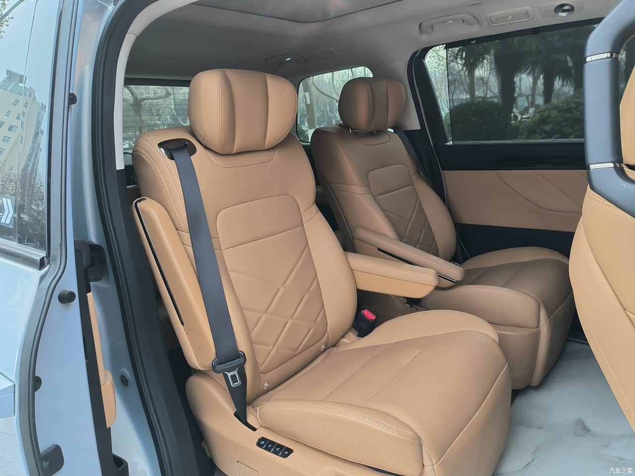 内饰大面积软包,看着温馨摸着手感挺好,二排零重力座椅带加热通风,跑个长途坐着也不累,三区空调+双层隔音玻璃,关上门就是安静座舱,家人休息、客户洽谈都合适。