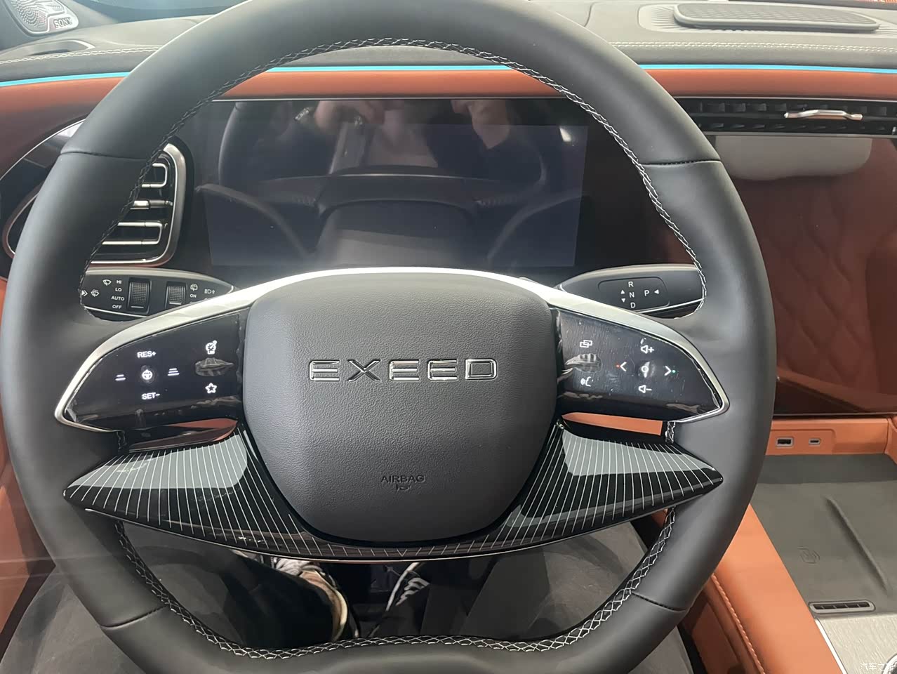 这个内饰我还是十分钟意的,一个超大的屏幕,看着就舒服。只不过如果贴个膜的话应该不好贴的。D形方向盘握在手里感觉很舒服,单手操作都游刃有余!