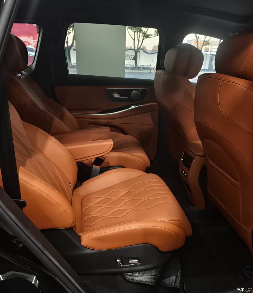 整车轴距优势明显,车内纵向空间充裕。第一排驾驶位头部和腿部空间宽敞,驾驶视野开阔;第二排独立座椅的腿部空间超两拳,扶手处的储物槽和杯架设计贴心;第三排即使坐成年男性,也不会有明显的压抑感,头部空间约一拳;后备箱支持比例放倒,储物能力在同级别7座SUV中属于上游水平,家庭出行或户外露营都能满足。