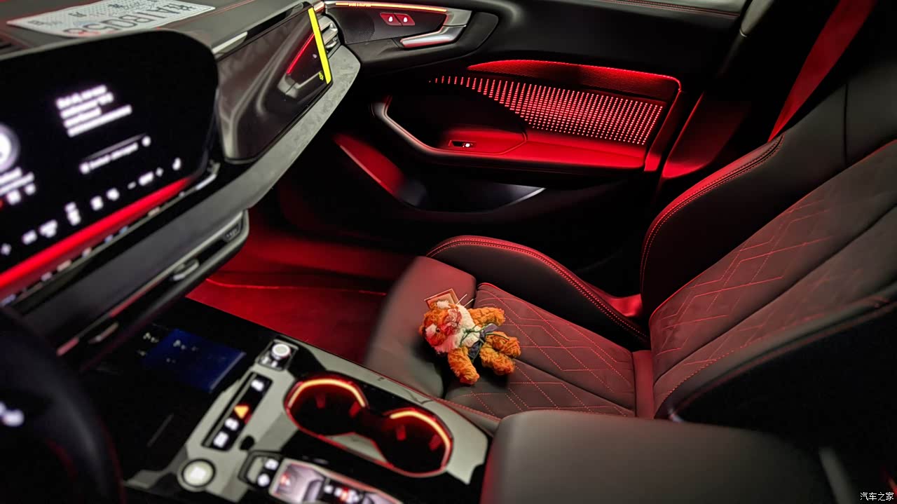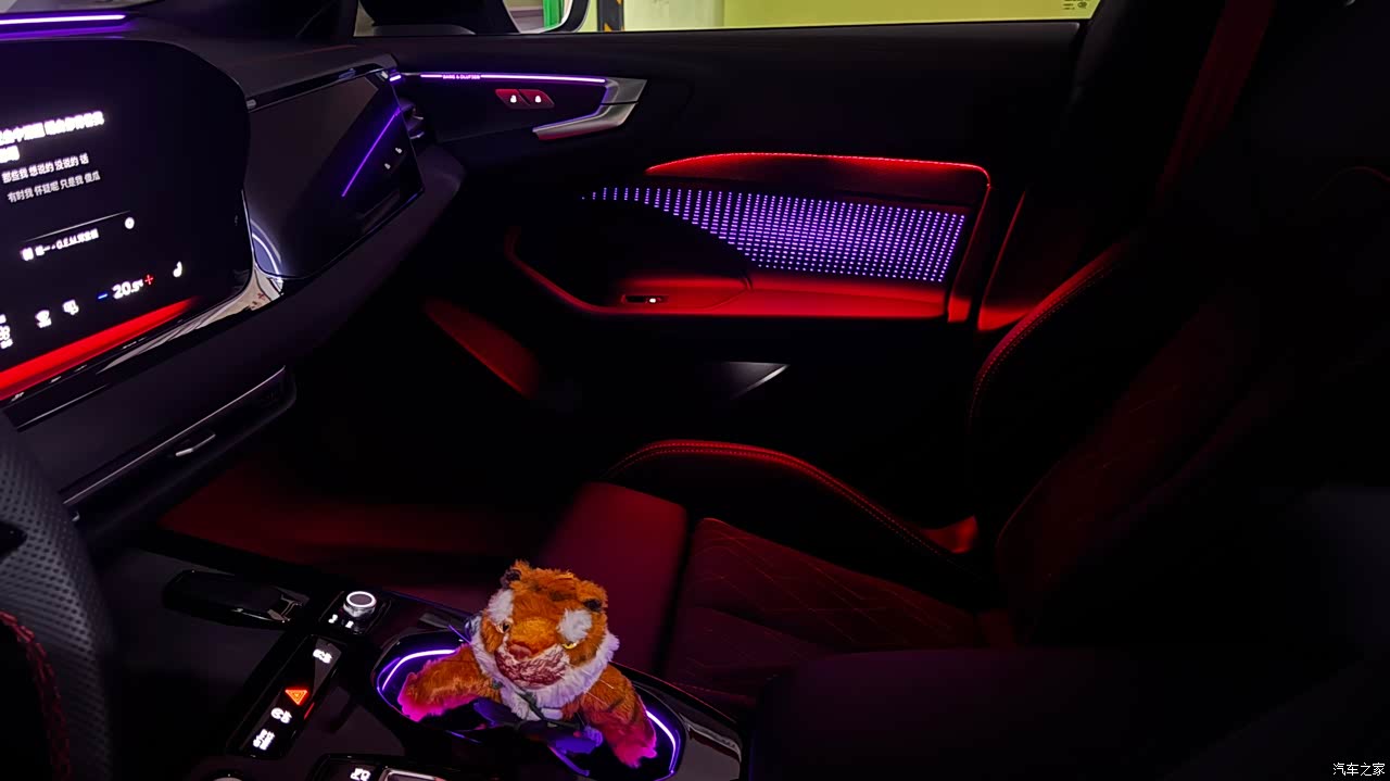 这个内饰灯光拍出来的效果没有亲眼看到的一半好看 但是车机的ui背景换成纯黑底的就完美了