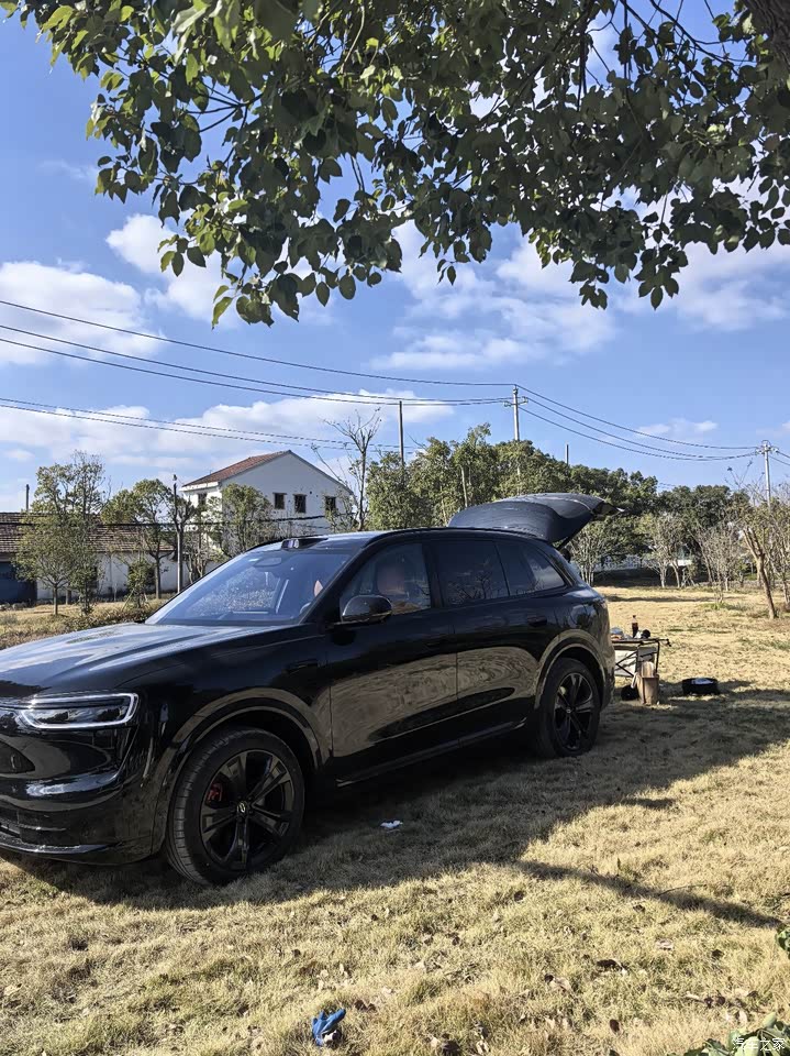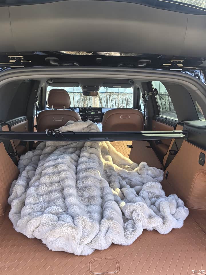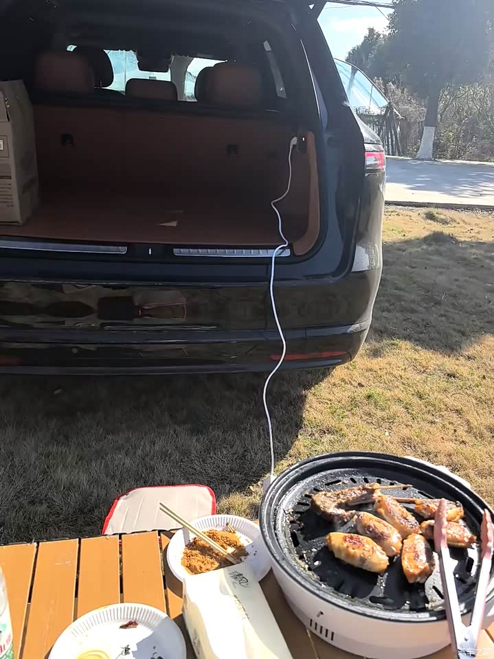 我选的是五座版,后排空间非常宽敞,家里人坐进去腿脚能舒展得很开。后备箱也足够大,日常采购或者全家出游的行李都能轻松塞下。上周带着它去露营,很多设备都能放不说,后排座椅放倒也能直接躺在上面休息。后备箱还有一个220V的插座,带的小烤炉插上就能用。
