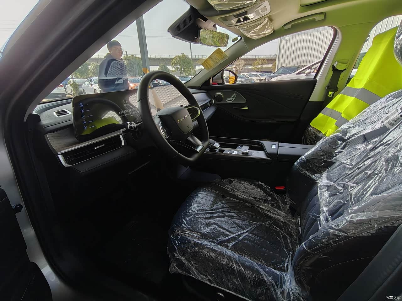 车内皮质座椅,坐起来柔软舒适,双触屏,空调效果也可以,驾驶位有座椅加热功能,