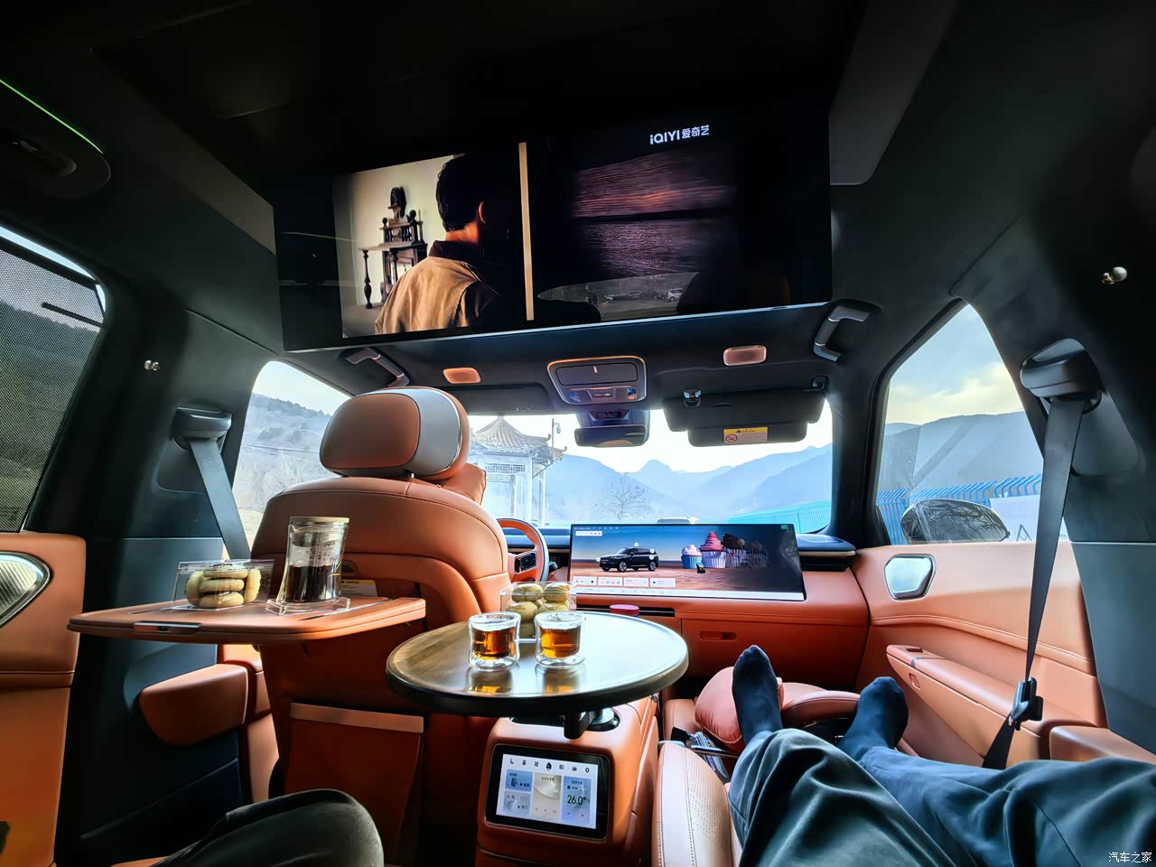【自定义场景-满分】又是领克900无出其右的强点:【天地门】这是后备箱拓展的空间,你可以打开后备箱,处理一些操作,比如我会在上面调试无人机,或者翻找包裹里的东西;【侧向观景座椅】想象一下,把车停在湖边,面向南方,晒着太阳,这是你真实能够体验到的舒适。如果你是钓鱼佬,真不敢想你会做出什么事。【二三排会客厅】将二排座椅旋转,你会得到一个大约3.5平米(我估算的)的方正空间,配合65x45的折叠桌,你可以在里面打4人掼蛋,也可以3人斗地主,或者你只有2人的话,可以摆上简餐,倒上红酒,打开60寸二排大屏,看一场泰坦尼克。PS:桌子原厂有卖,但我在淘宝花了130买了平替,展开折叠更简单,平时还可以放在后备箱。【1.5米大床】2,3排可以形成一个1.9米x1.5米的大床,配合二排60寸大彩电,这个体验又是同级少有的。