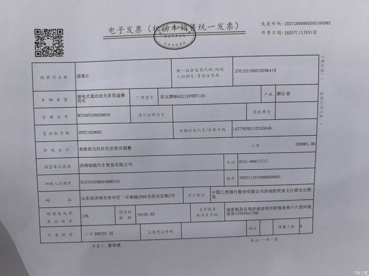 【购车价格】我是10月下定11月提的车。优惠方面:厂家直减2万,老车主优惠0.5万,10月限定优惠0.2万,大约就是这些,总计339901吧。贷款方面:做了厂家的3年20万免息,确实是免息。赠送方面:原厂电动踏板、耀石充电桩、全车脚垫、颈枕4个、128GB存储卡。老车领克01的“终身免费质保” 权益转移至新车。