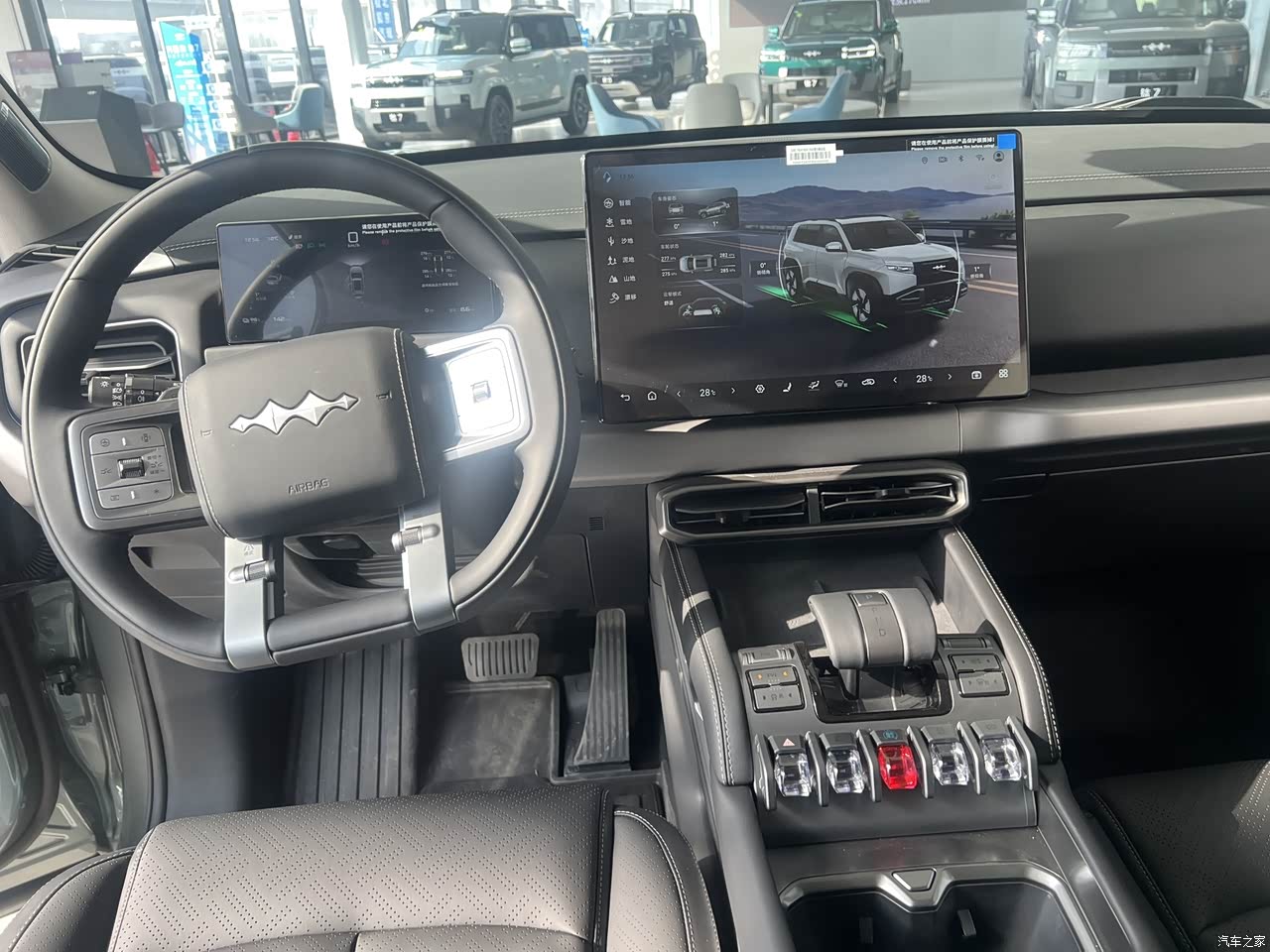 这家店里有2个内饰,有个黑色的还有一个浅色的,我看的是黑色的内饰,整个内饰整体还不错,毕竟指导价16万多的车,车内的大屏看起来很有科技感,多功能的方向盘、灵动岛设计的都很奈斯,一句话,是我喜欢的样子