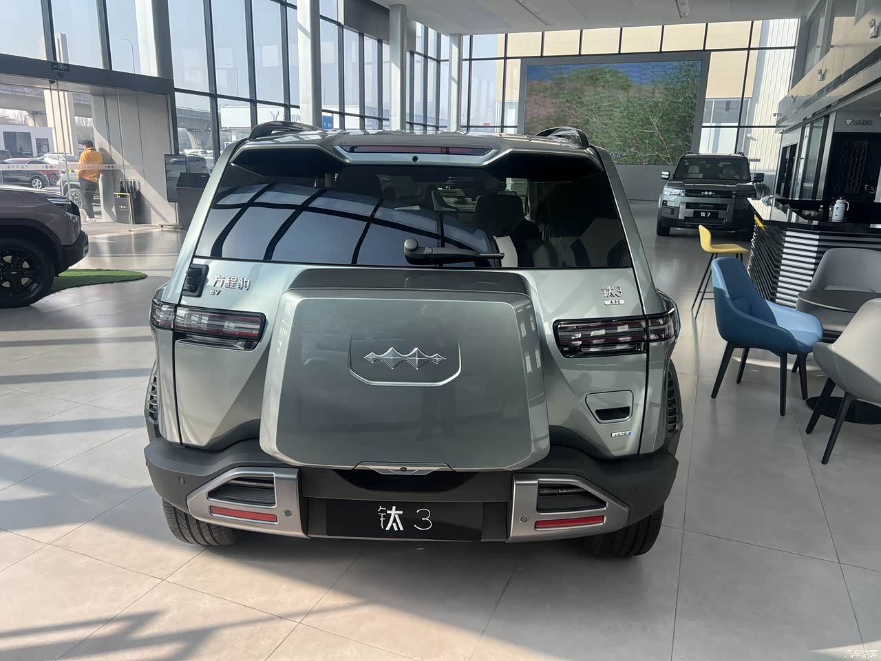 这款钛3的外观是非常棒的,喜欢的人会感觉这个车非常潮流,不喜欢的人会感觉很丑,实际上我个人对这个车的前脸是不大认同的,我个人很喜欢这个车的侧面和后尾部,侧面你的轮廓、轮辋设计的都很漂亮,侧面的曲线也很好看,侧面我不大喜欢的是门把手,后尾灯设计的很好看,后备箱外挂的工具箱很好看,就像小学生背着书包一样