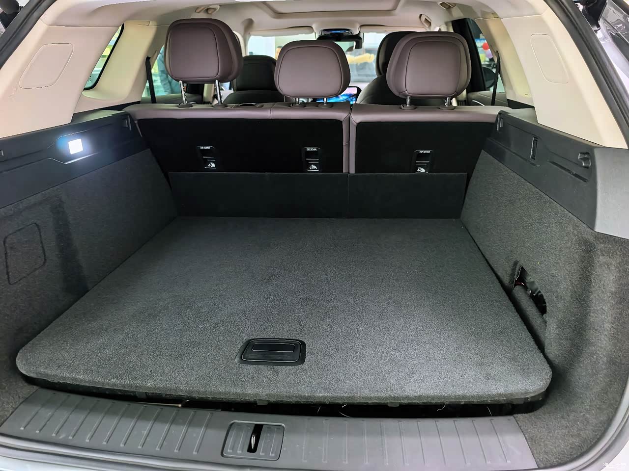 这款车有5座和7座。5座的话,后备箱空间应该说超级大。平时家用,用来拉一些小货物,或者自驾游拉一些东西,完全够用。而且后排乘坐空间不但宽。还显得更大。我1米76的个子,坐在里面。头上还有两拳的距离。躺在后排座椅上。刷着手机。如果我把后排座位放平的话。躺两个大人没有一点点拥挤感。