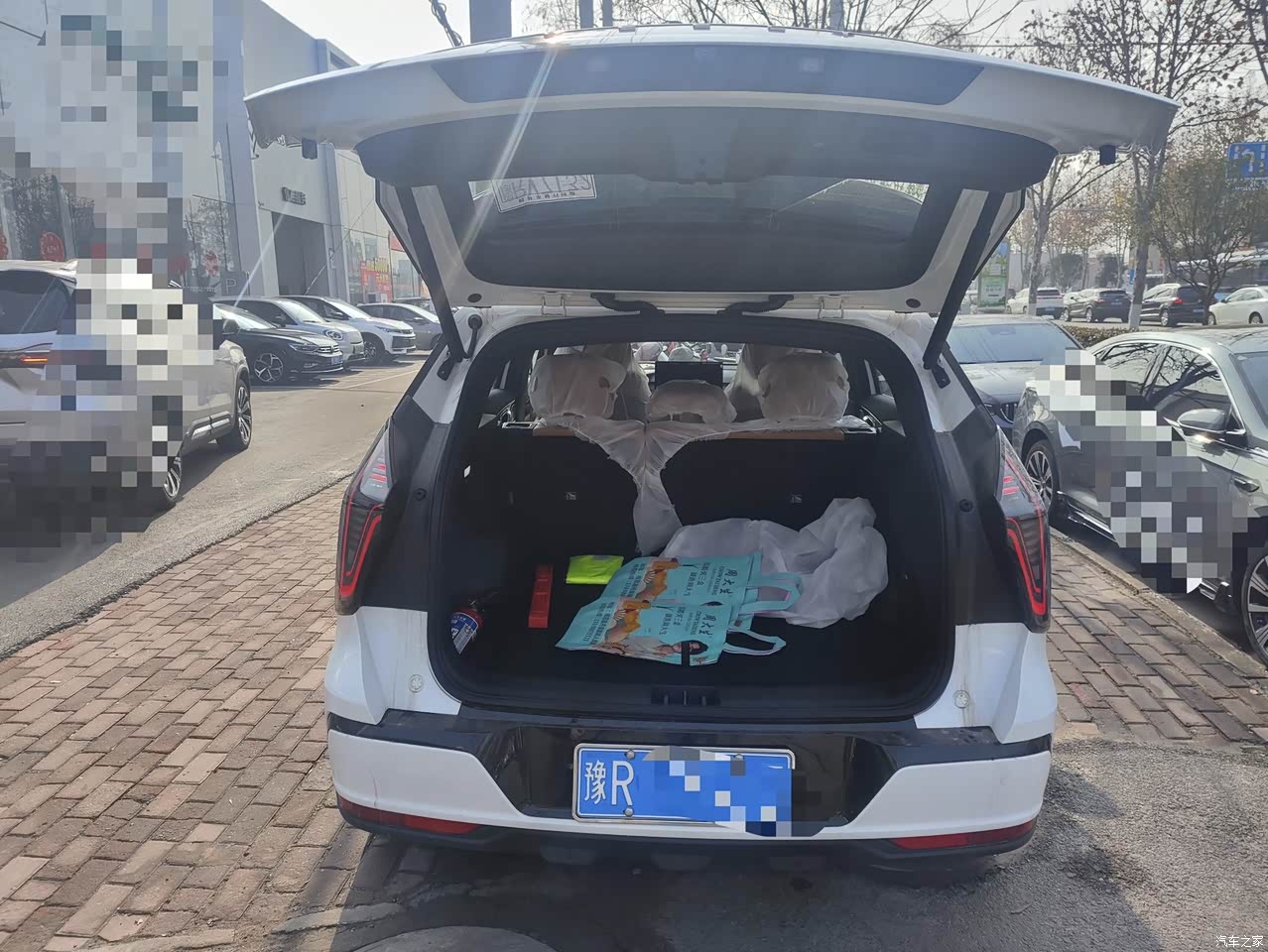看看后排翘二郎腿都是松松的,可以左右晃动,前排更不用说没毛病,随便看五个人,储物空间做的够大能满足日常需求,水杯架对我来说很实用,爱喝水,平时放个水杯都挺好的,车里面的空间挺大的,平时就是我自己用车,买的车除了主驾驶,其他都没人坐,新车座椅保护套我都没摘,仍然保持干净。