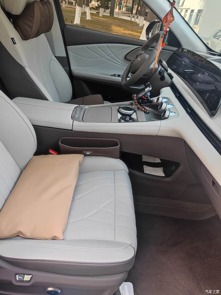 内饰用料很好,座椅偏窄偏硬,舒适性不错。PM2.5过滤系统很好用,在雾霾天气发挥了作用。座椅通风加热按摩功能很贴心,使用方便。第二排座椅的舒适性也非常好,还可以调节靠背角度。空调效果不错。