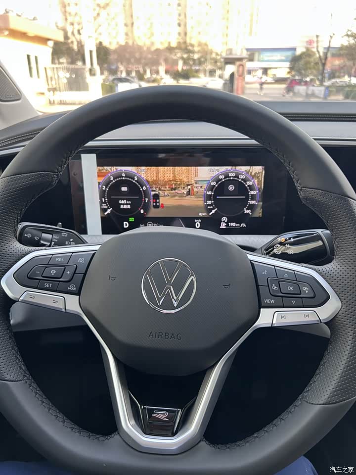 这台450TSI用的是大众最新的第五代2.0T发动机,劲儿可比老款大多了。从店里出来上机场大道,一脚油下去,推背感“噌”一下就来了。官方说7秒多就能破百,咱没测,反正超个车、并个线,动力是随叫随到,一点不“肉”。跑起来以后,再加速的劲儿也还有,跑高速肯定不费劲。 最让我意外的是,这么大个车,开起来并不笨。方向盘轻,转弯半径也没想象中那么大,在市区掉个头,一把方向不够,稍微回一点也差不多了,比我想的灵巧。底盘是德系那种扎实的感觉,过个减速带“咚咚”两下,很干脆,不散不乱。专门往东边开了段路况一般的县道,细碎的颠簸过滤得挺好。
