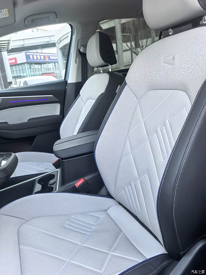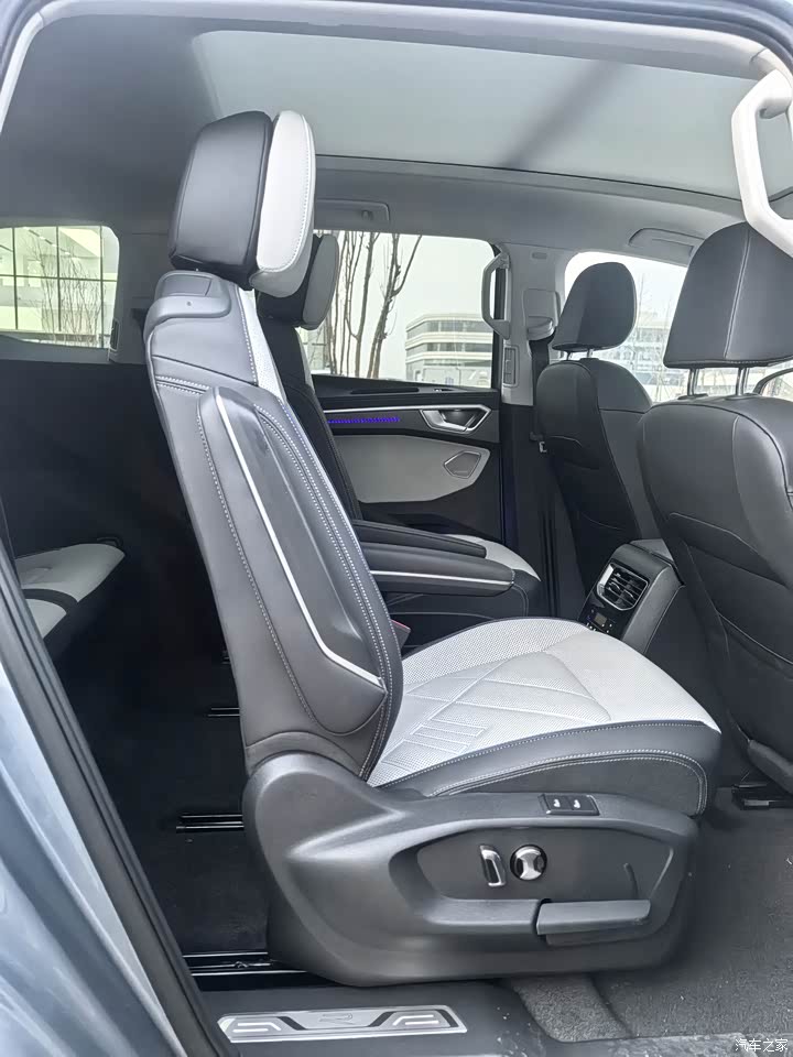 内饰大面积软质包裹摸着特别舒服,缝线做工也很精细,完全不像这个价位的车能有的质感。中控台布局很规整,15寸大屏和全液晶仪表盘连在一起,科技感直接拉满,而且操作一点不复杂,我爸妈上手几分钟就会用了。车内氛围灯有好几种颜色可以调,晚上开车的时候调个暖色调,氛围感直接拿捏。座椅是真皮的,支撑性很好,开车久了也不会觉得累,而且前排座椅还能加热通风,夏天不闷冬天不凉,太贴心了。