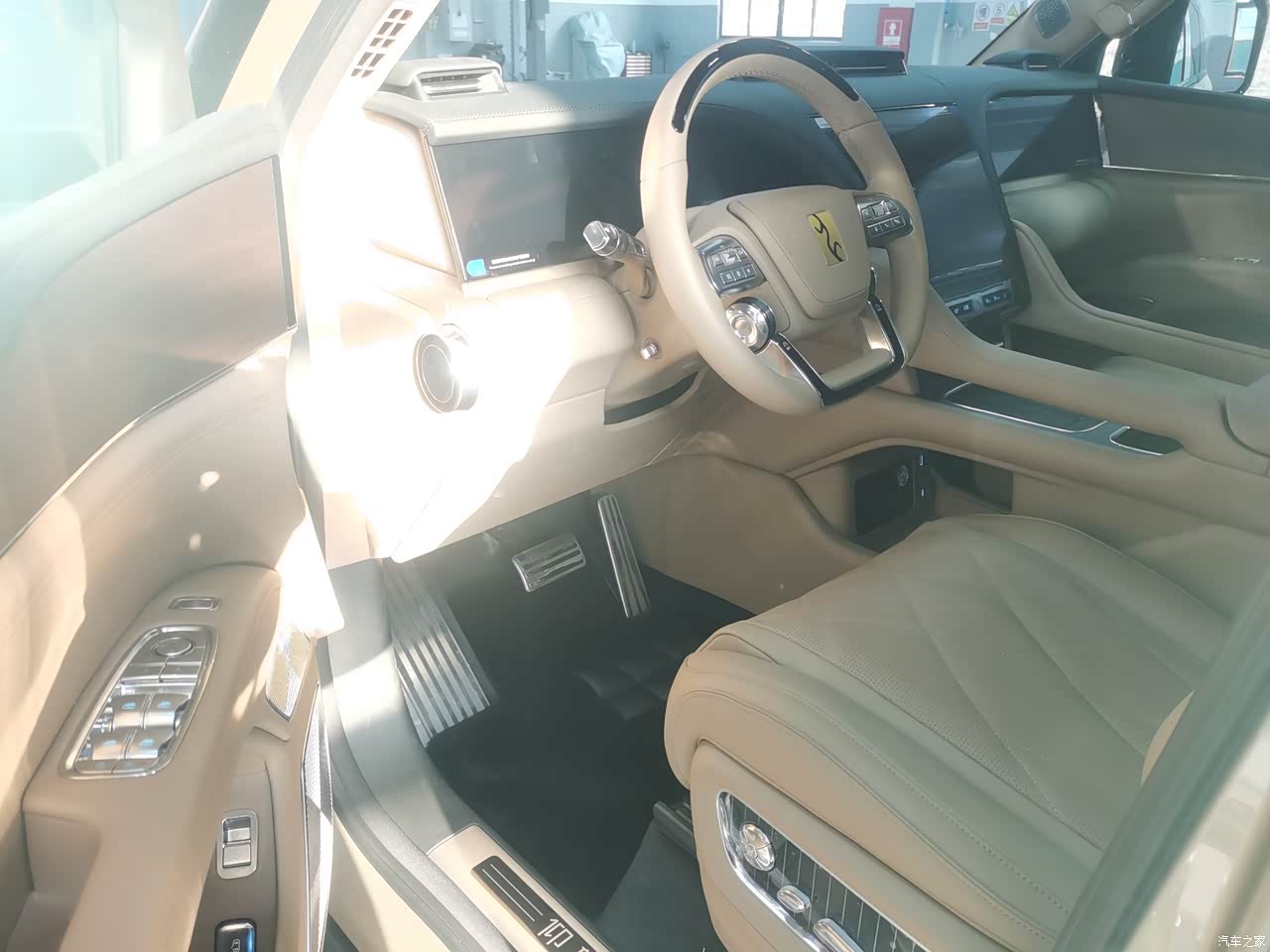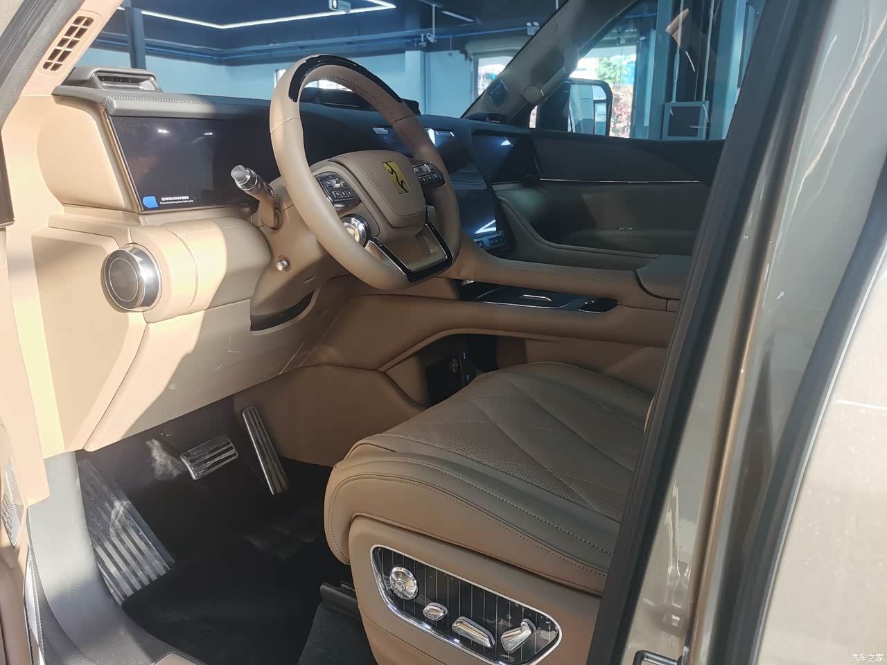 整车配置非常豪华,实打实的真材实料,nappa真皮座椅,木纹装饰条,尽显高档。隐私玻璃这点非常好,而且特别实用,省去贴膜费用了!