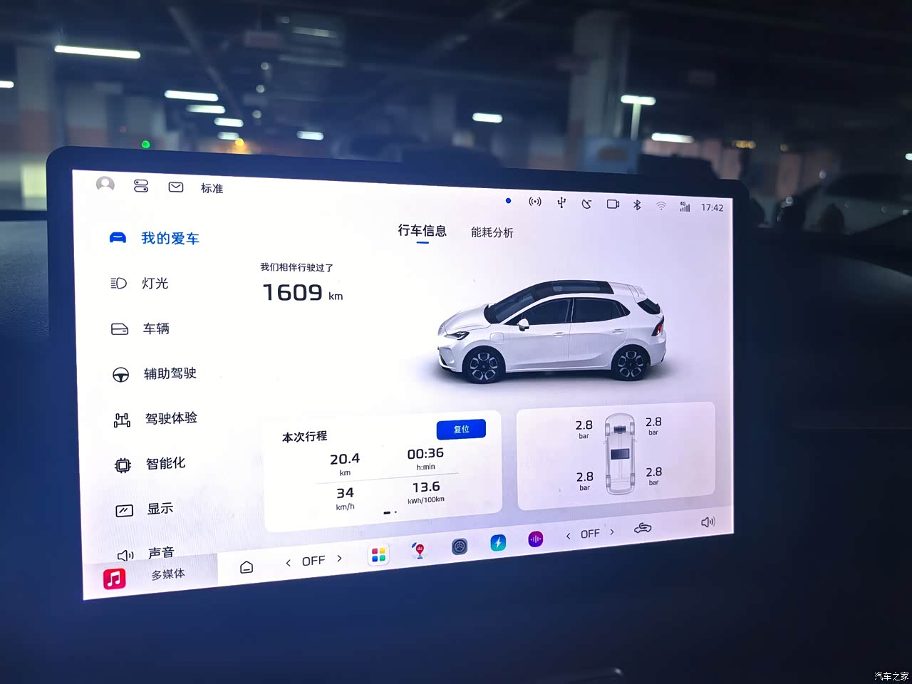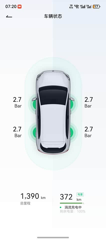 目前提车20天,跑了1600 公里,目前动态续航在370 左右,实际跑的续航在350+ 左右,续航打成八折左右,日常通勤一周一次充电