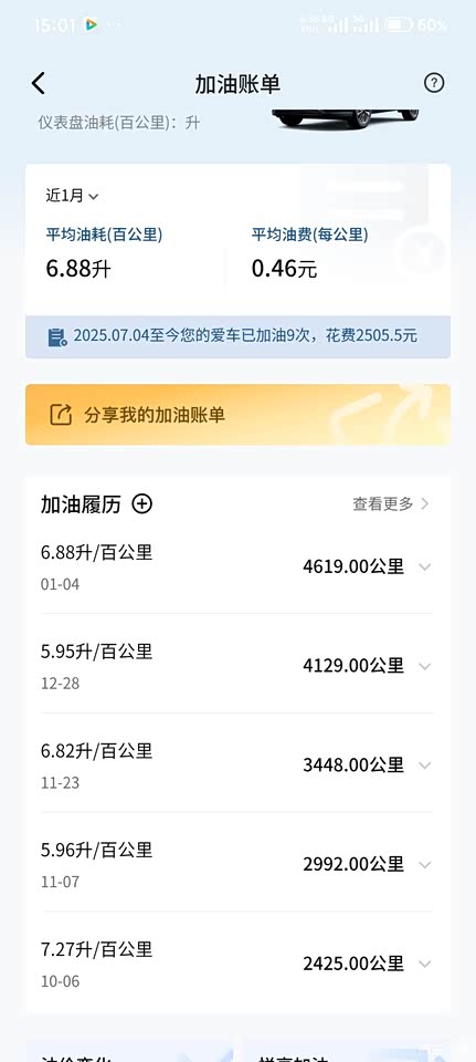 由于我开的高速比较多,所以我的油耗一直在6.6到七个油之间,威兰达的油耗还是非常的不错,平均合计不到五毛钱,如果是在,高速上稳定在100公里每小时,它的油耗会在,百公里五升左右,一箱油可以跑750公里,真是省钱又省心