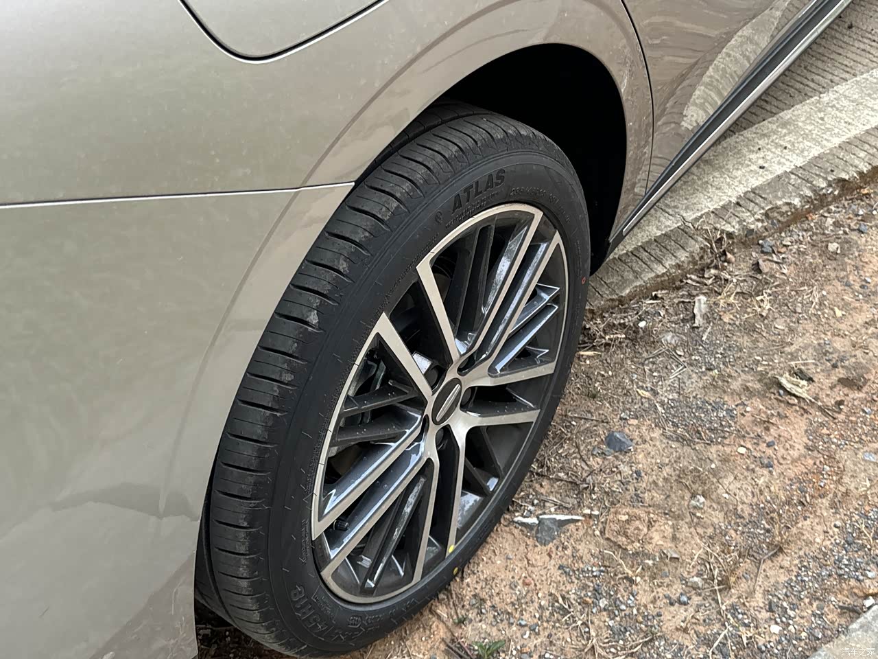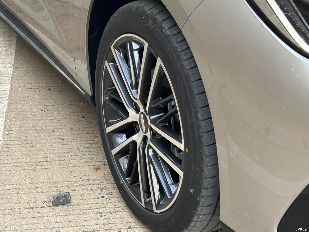 新款车型的外观造型还是很突出的,特别是从侧面看上去前长后短的比例以及侧身这条硬朗的腰线让整个车子显得更加修长了,包括这大尺寸的双五幅轮毂也是很协调的,这辆车开出去辨识度绝对很高。