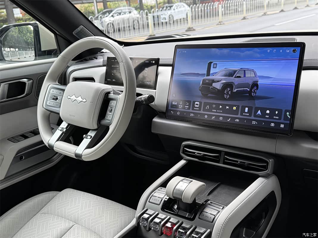 坐进方程豹钛3的车里,第一感觉就是简约又充满科技感,未来主义设计风格,让人感觉特别清爽。