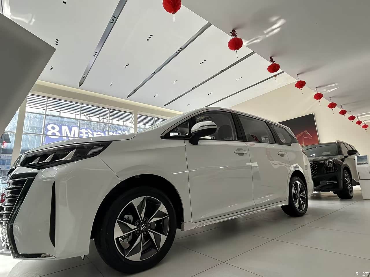 其实传祺M6的车身比例还是挺协调的,尤其是从侧面看上去修长的车头和方正的尾部看起来很大气,包括轮毂造型也挺时尚的。