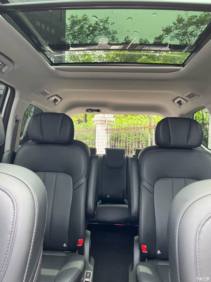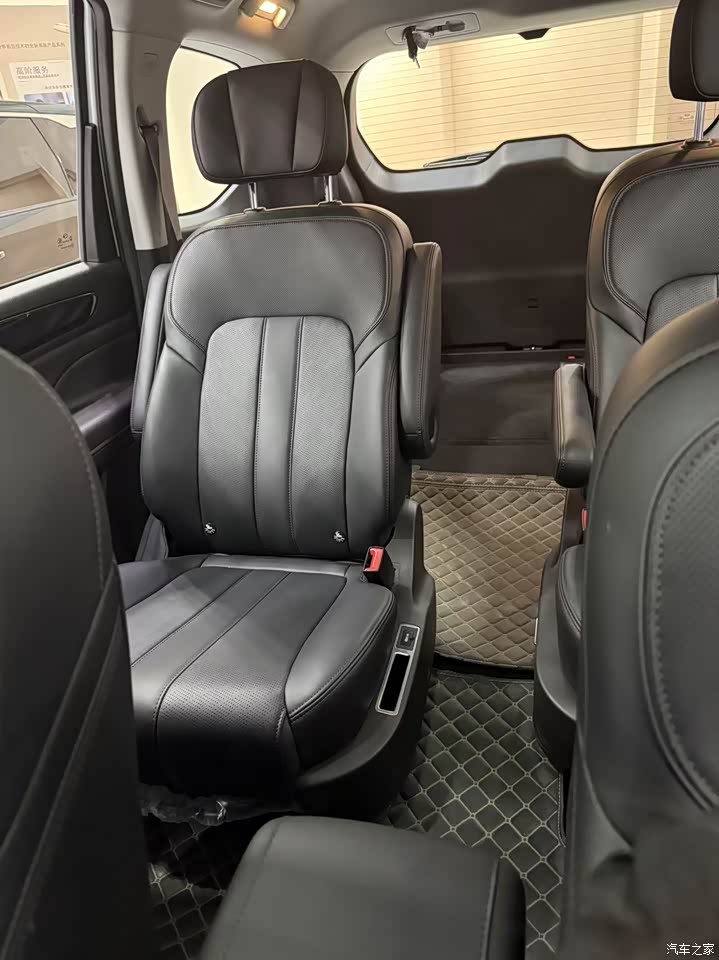 二、内饰:坐进去就不想出来的“大沙发” 拉开门,和悦启程内饰(销售说是浅色系搭配软包材质),看着温馨,摸着舒服。最爽的是自动空调,上车前用手机APP提前打开,夏天进车里不会像蒸桑拿,冬天还能暖风除雾(北方朋友懂的都懂)! 空间真的是M6的“杀手锏”——2+2+3的7座布局(我选的7座,偶尔带丈母娘、老丈人,7座更保险),第二排是独立座椅,中间有过道,去第三排不用挪座椅,直接走过去就行。我1米75的身高,坐在第二排腿能伸直,第三排我坐进去,膝盖离前排还有一拳距离,完全不憋屈! 储物空间更是“变态级”:门板上有3个储物格(能放水杯、雨伞),中控台有双层手套箱(放文件、零食),后备箱常规容积就有324L(能装4个24寸行李箱),把第三排座椅放倒后,能扩展到1354L(搬家都不用叫货拉拉,婴儿车、折叠椅、钓鱼竿随便塞)!