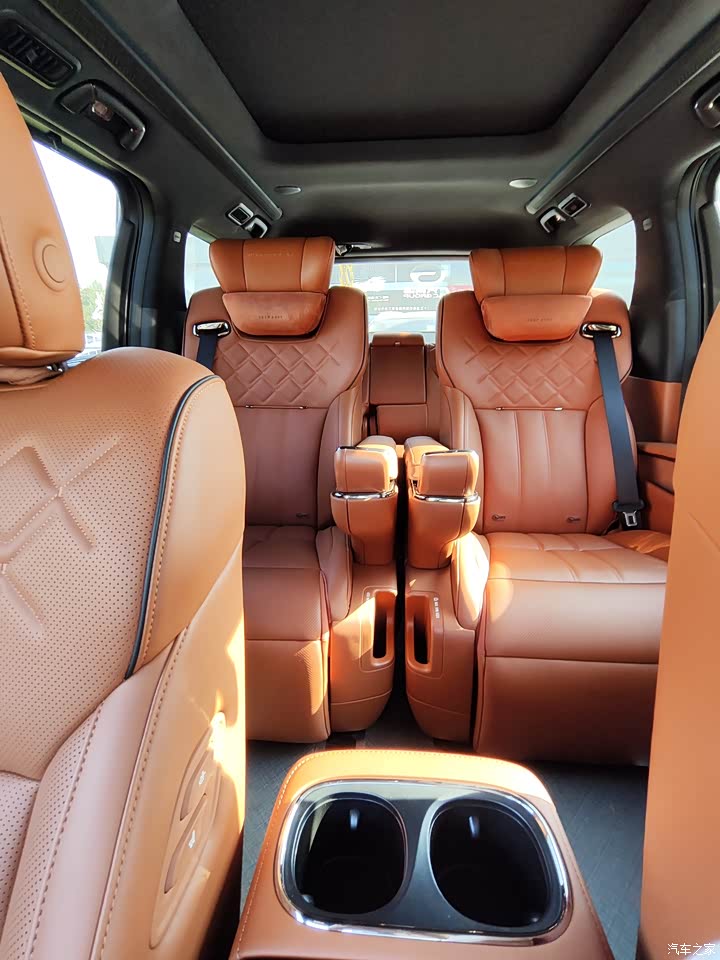 内饰低调奢华,一点都不浮夸,但就是看着很顺 眼。内饰部分都是Nappa真皮,用料和设计都很 不错,而且舒适度是真行,老人坐座椅舒服,小 孩有屏幕看,媳妇怕空调直吹,我还能放点喝 的,车上每个人都照顾到了,奈斯。