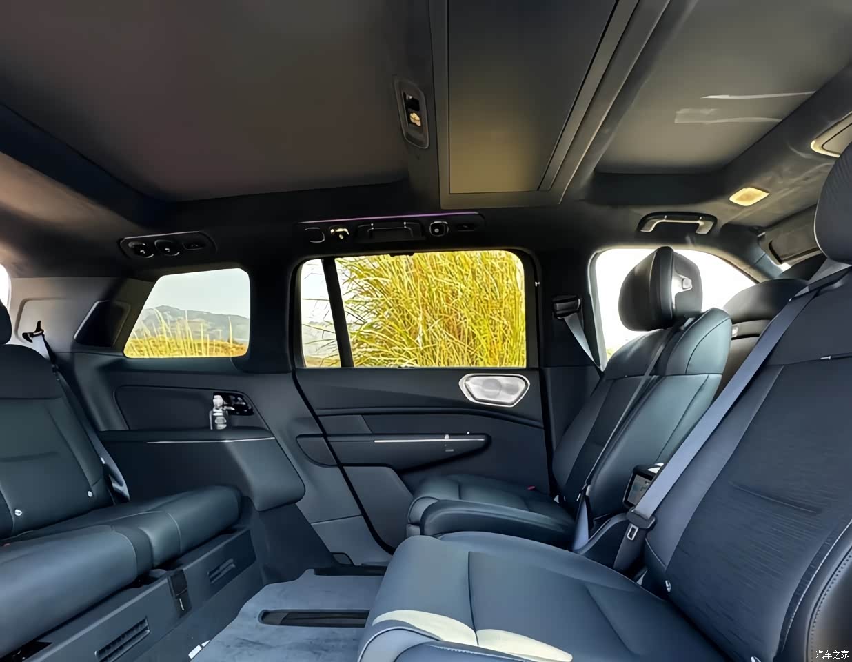 在空间上,前排跟第二排都比较宽敞,算是属于独立座椅,哪怕是第三排也是停宽敞的,以前总觉得6座车的第三排就是凑数的,结果领克900的第三排,正常大人坐进去完全不挤,腿部和头部都有富余,坐久了也不会觉得累,就是第三排要是坐3个人就会比较挤,只能坐两个人。