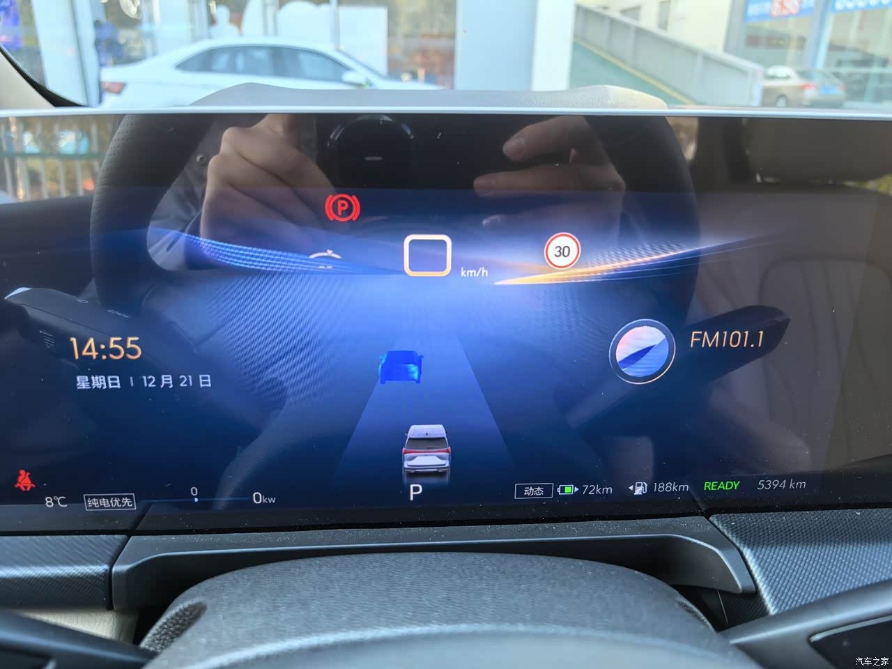 开起来很稳,尤其是高速一点不发飘,过滤路面颠簸不错不颠簸。动力绝对够用,电机起步很轻快,发动机介入时能感觉到,但动静不大。方向盘不算重,我老婆也能轻松开。