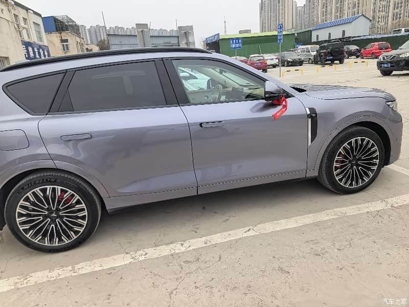 外观我选的琉璃紫,在店里光照下是暗紫带金属感,低调一点,上路天儿好晒出来会更亮,神秘的调子有,优雅也有,回头看的人不少,这颜色贴着近五米的车身,门把手隐藏,整条腰线拉长,气场是中大型SUV那种,但没有黑色的沉闷,朋友见了都说挑得巧,路上碰同色的不多,前脸的主动闭合进气格栅,销售介绍说跑高速降风阻,冷天给电池保温,听着功能点清晰。