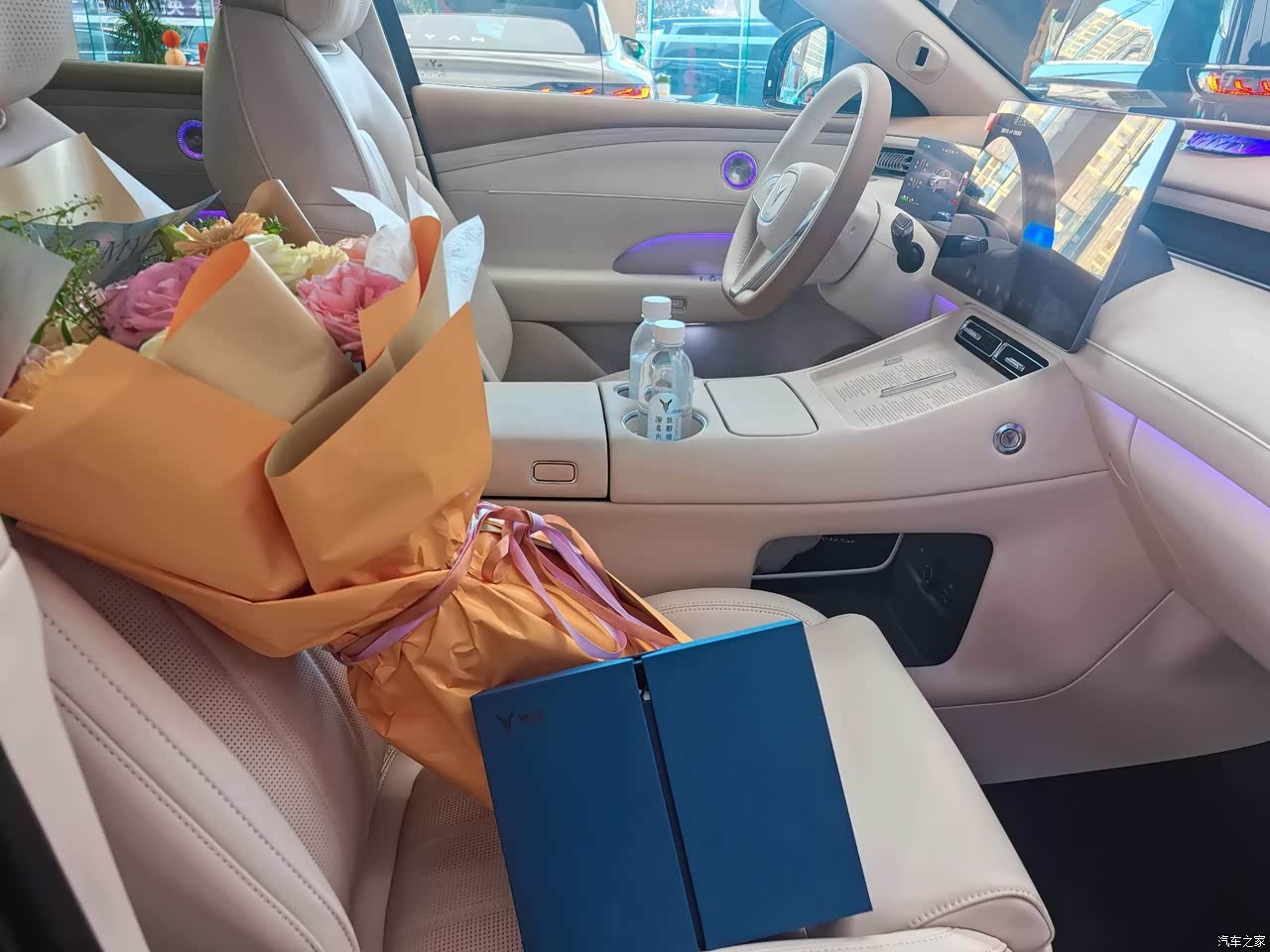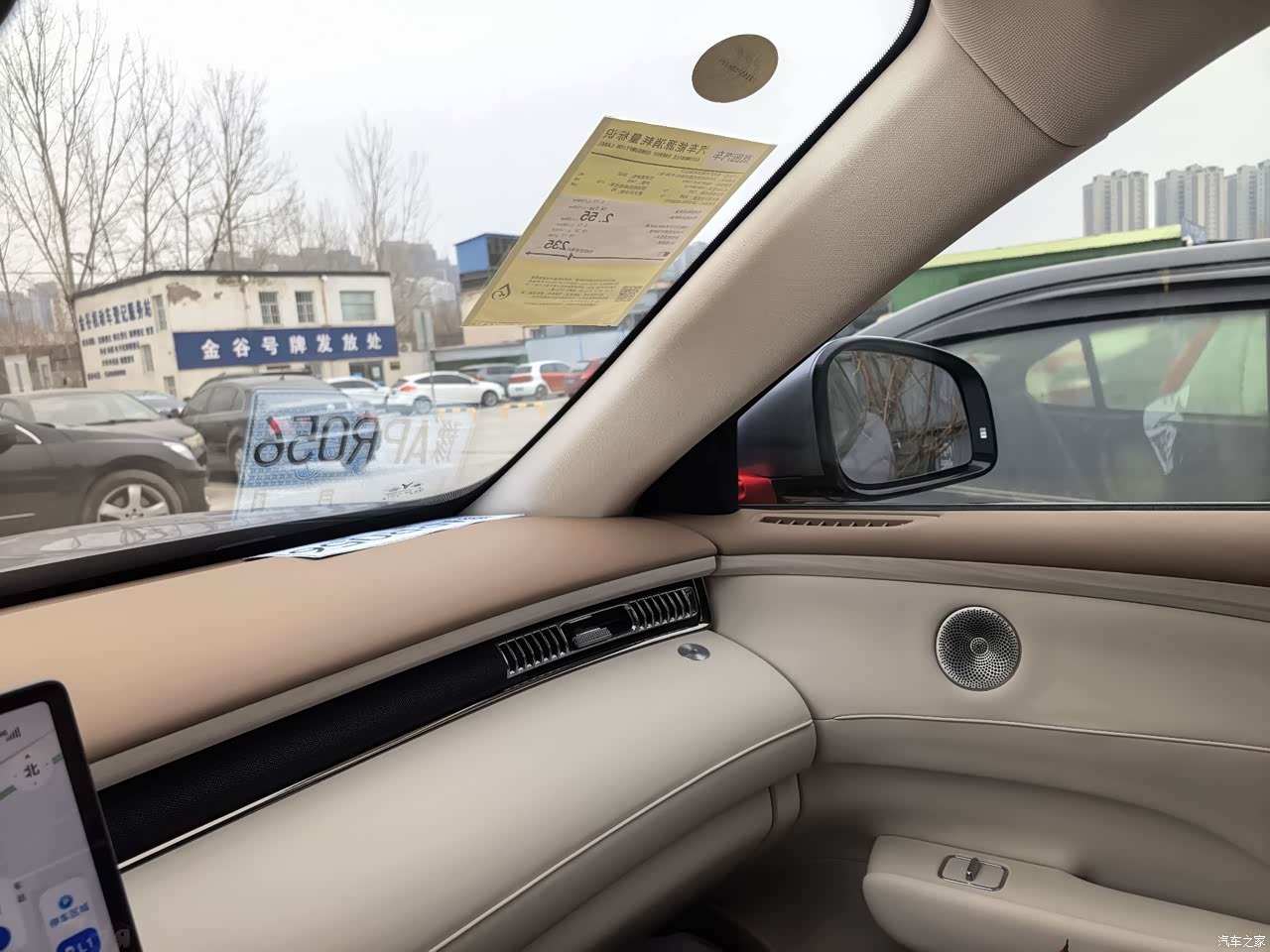 内饰用的琥珀棕,实车比图片更暖更有层次,黑色那种压抑感不见,米白那种容易脏也避开了,手能摸到的地方软皮和仿麂皮包得满,木纹饰板点缀着,摸起来细腻,提车那天没闻到刺鼻气味,氛围灯256色,晚上一亮车里就有了感觉,副驾的女王座椅电动腿托可以把人放到接近平躺,跑长途副驾坐着不累,通风加热加按摩都在,实际用起来就是把休息那套落到位。