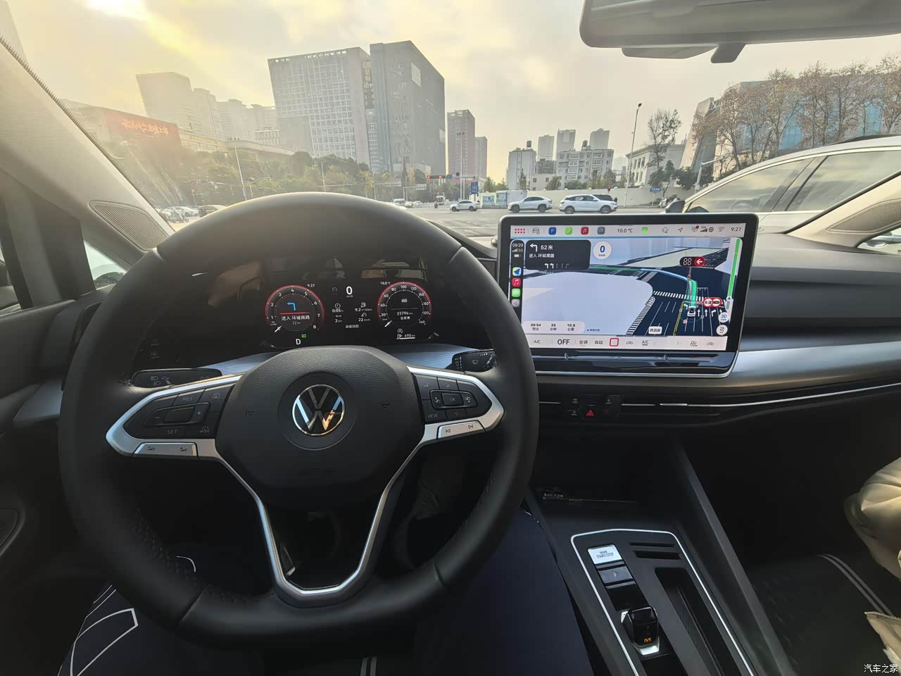 外观就是标准的大众脸,谈不上多惊艳,但属于耐看型。我选的白色,配上这个车身线条,挺精神的。贯穿的灯带和能点亮的大众标是点睛之笔,晚上解锁车子,灯一亮,仪式感有了。轮毂样式也还行,整体看起来不跌份,挺适合我这种普通上班族。