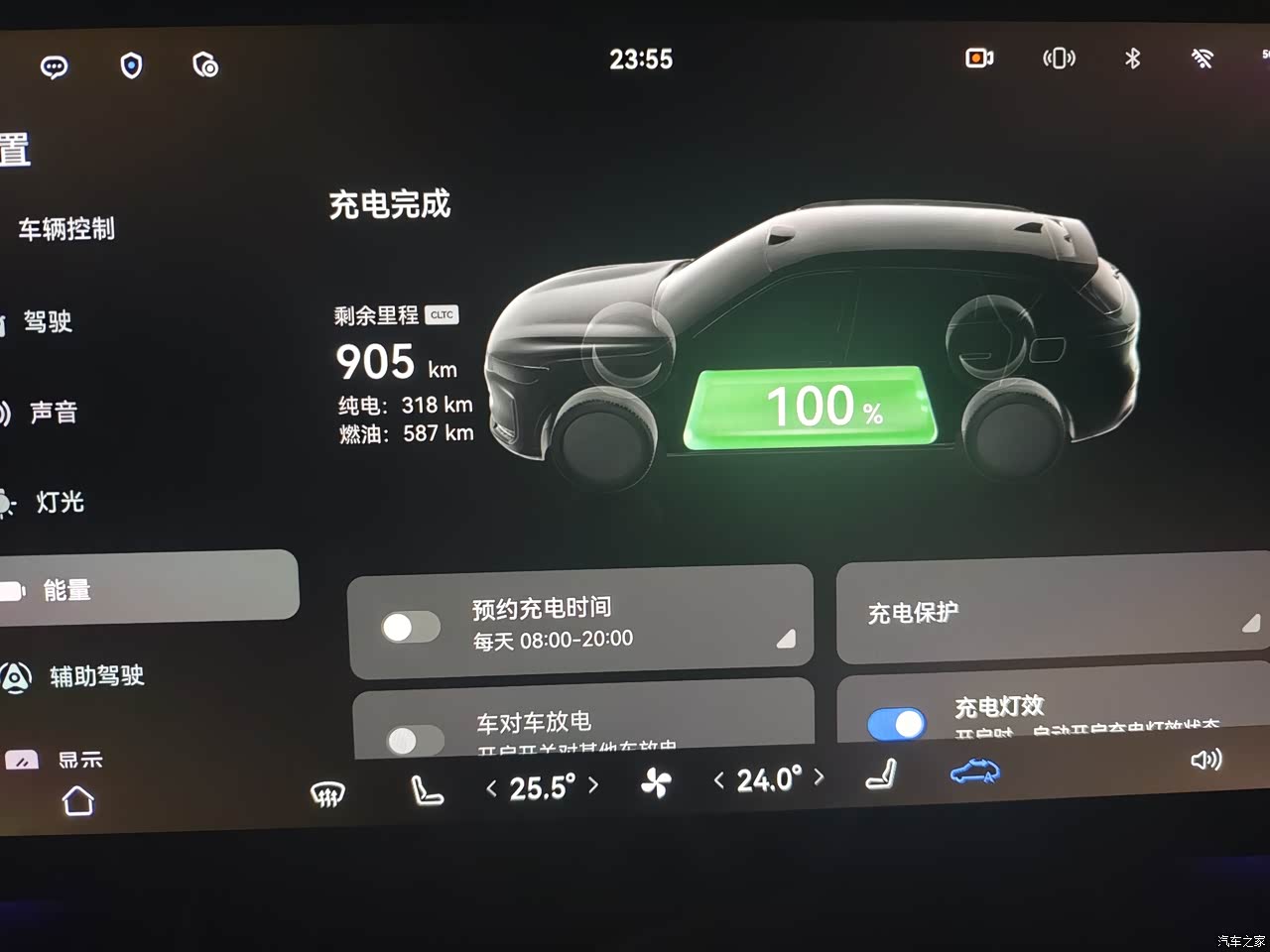 续航这台的CLTC纯电是三一八公里,市区开空调放音乐,我这边能跑到二百四到二百七之间,差不多八折多,家里装了充电桩,当纯电用也行,一周补一次电就够,综合续航官方给了一四五八公里,我没一次性跑到那么远,满油满电时仪表盘显示一千多公里,这个数字放在那里行程规划更自由,亏电油耗差不多百公里六到七升,以一台这么大的SUV去看,这个区间正常。