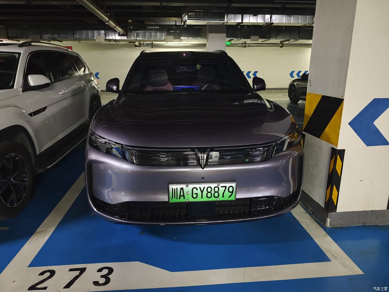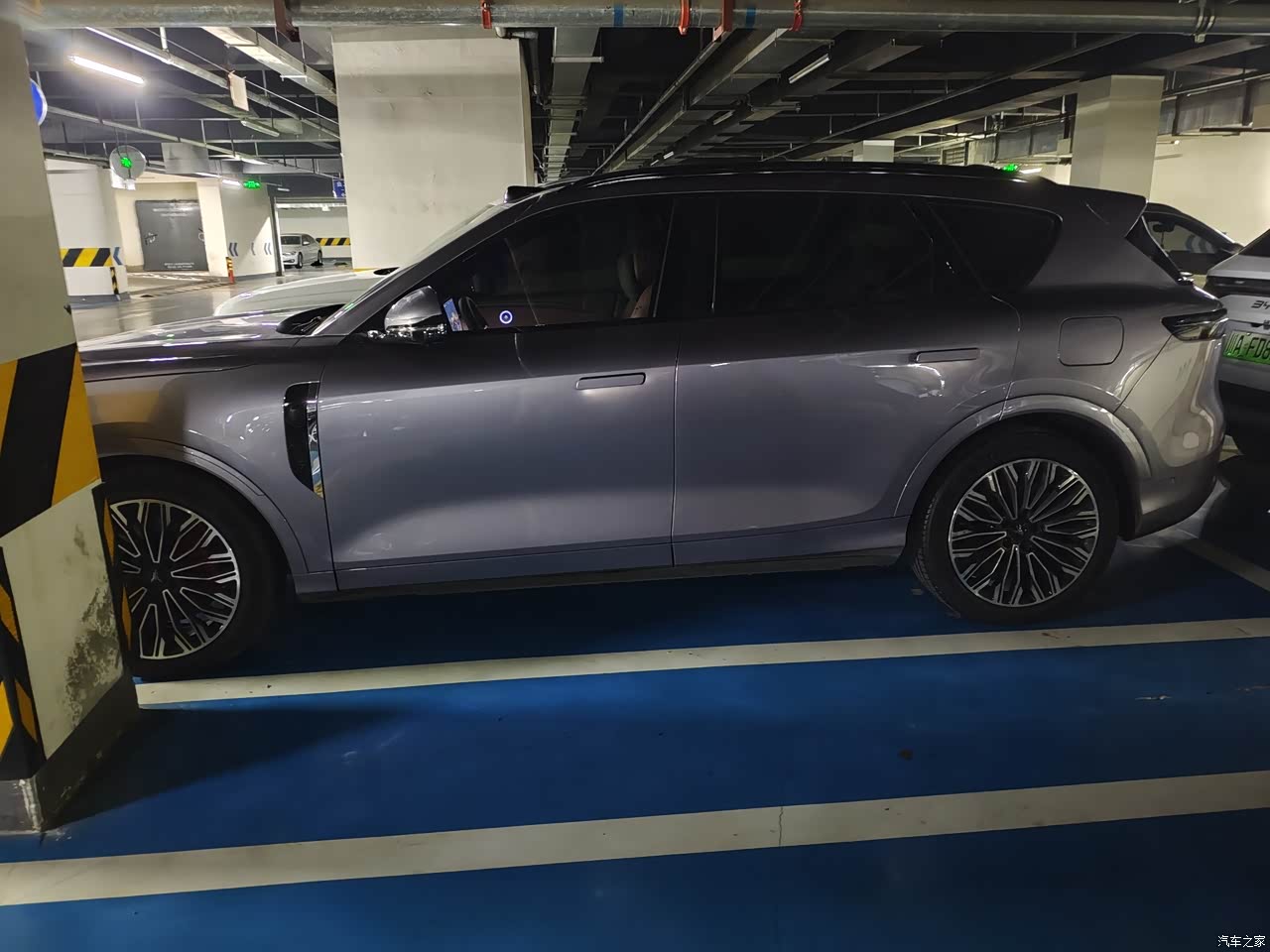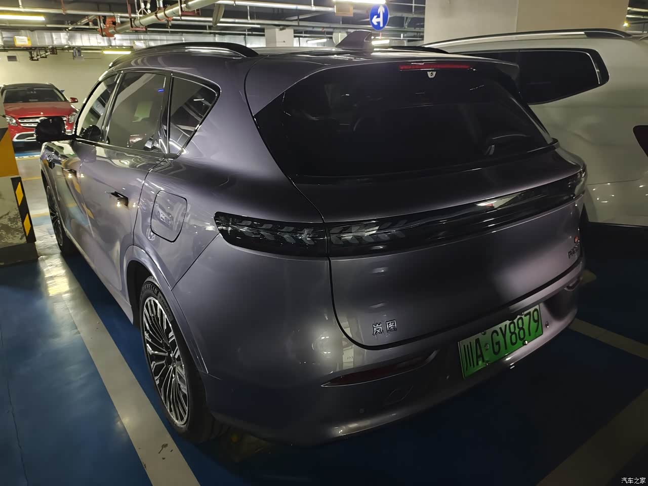 驾驶时的感觉是稳和顺,后置单电机二一五千瓦,市区加速够用,电门响应线性,起步轻,跟车不累,脚下再深一点推力马上到位,超车动作干净,底盘是前双叉臂后多连杆的全铝结构,看配置就知道下本,调校偏家用舒适,压沟压坎,过减速带,震动处理得柔,车内的起伏不多,转向低速轻,高速沉,车身体量在手里不拧巴,开着不觉得它大,灵活,跑到一百二也稳,车头不飘。