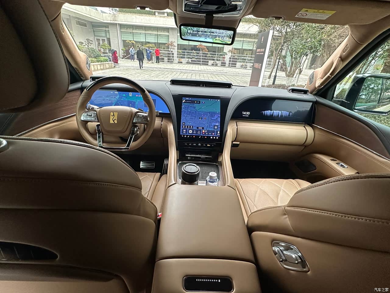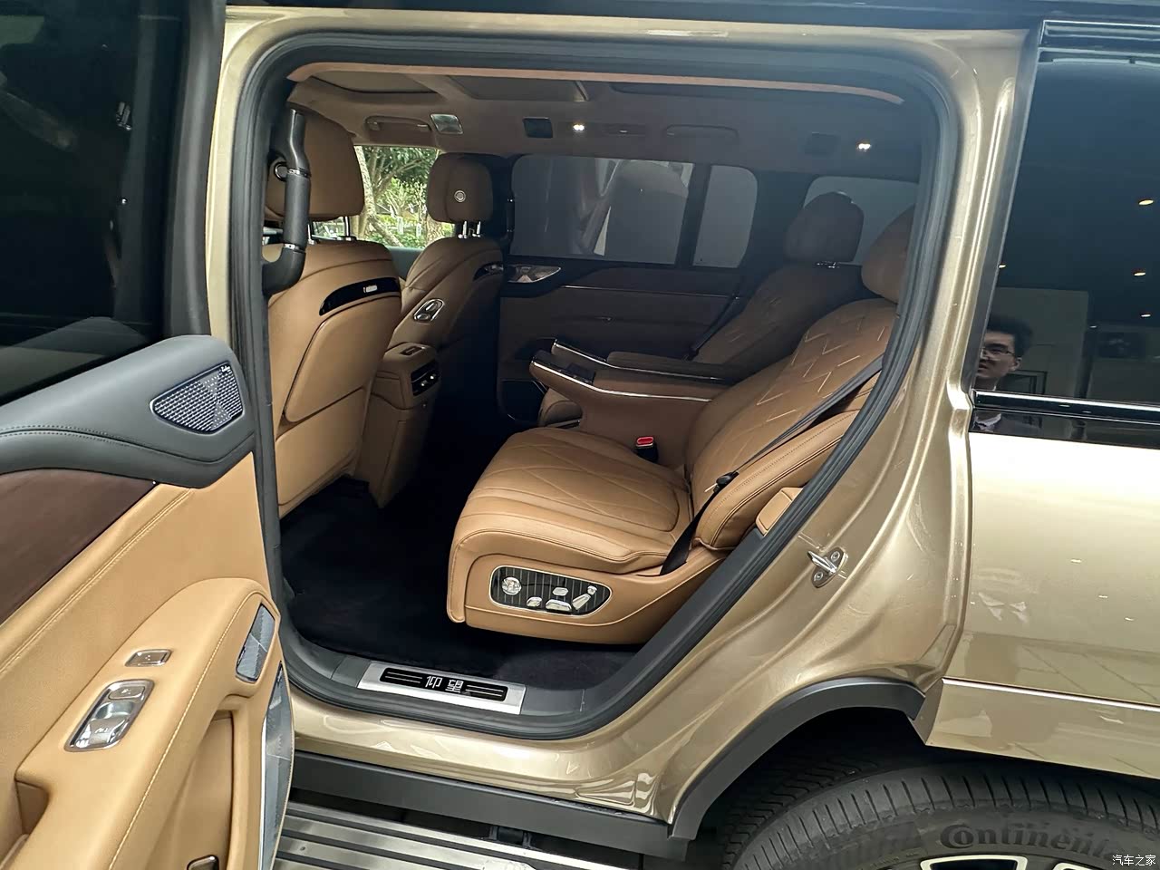 内饰的豪华感很强,能摸到的地方基本都是Nappa真皮包裹,搭配细腻的木纹饰板,触感和视觉效果都很高级。全车隔音做得非常出色,关上车窗后,路噪和风噪都能被很好地隔绝,再加上丹拿音响,音质特别棒。二排的独立触控屏很实用,客户或者家人可以自己调节座椅、空调和音乐,私密性也更好。车内的冰箱设计我特别喜欢,制冷和制热速度都很快,空间也够大,放几瓶饮料或者孩子的辅食都很方便。