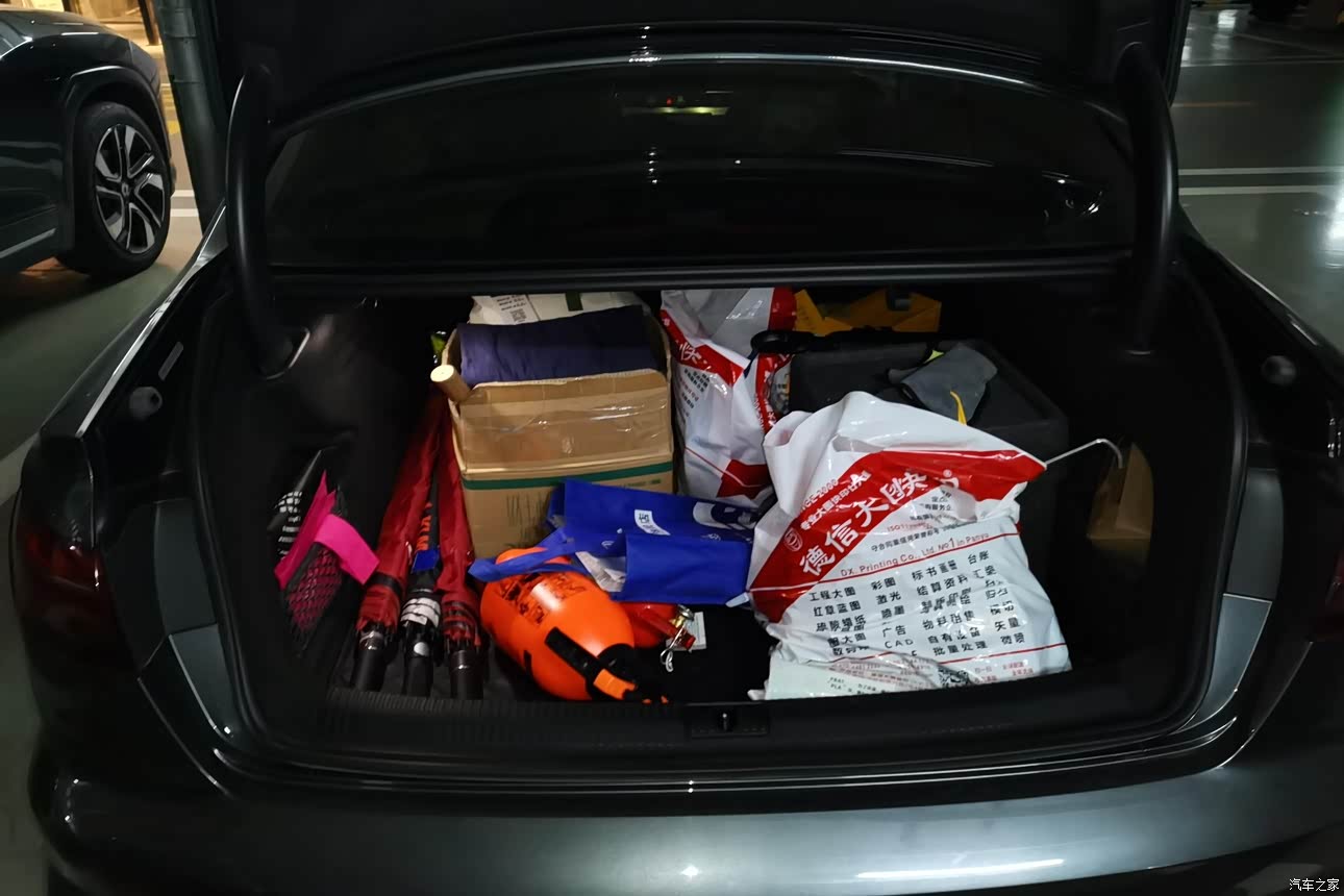 我平时自己开,前排很宽敞。后排坐两个人很舒服,但中间地台太高了,坐三个人会有点尴尬。后备箱空间确实不大,出远门装东西得好好规划一下。还有个小细节,主副驾驶座椅后面没有网兜,后排的人放手机啥的有点不方便。