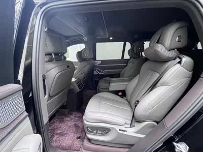车漆自带高级感,阳光下车身像流动的液态金属,商务接驾有面,家庭露营拍照出片。封闭式格栅 隐藏式门把手降低风阻,助力环保续航,贯穿式尾灯带流水效果,夜间辨识度拉满。车身用大量再生钢材,兼顾安全与环保,22英寸轮毂气场十足,既符合商务沉稳气质,又不失家庭用车的活力感。