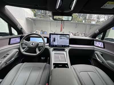 内饰搭配再生木纹饰板,环保又温馨,商务洽谈显格调,家庭用车够舒适。主驾座椅带按摩功能,长途商务开车不疲惫;二排航空座椅支持加热通风,娃和客户都能坐得安稳。17.3英寸中控屏 50英寸AR-HUD联动流畅,氛围灯可随场景切换,智能绿净系统快速净化空气,新车几乎无异味,环保细节拉满。