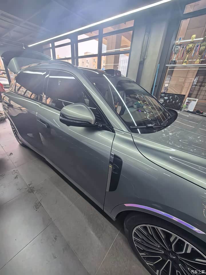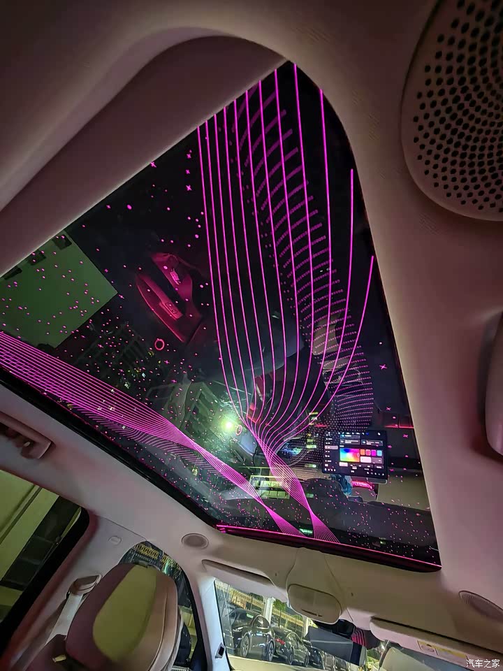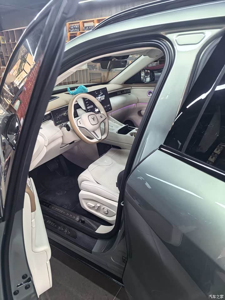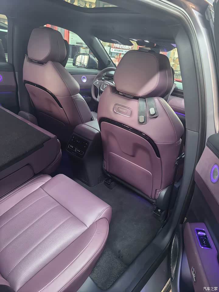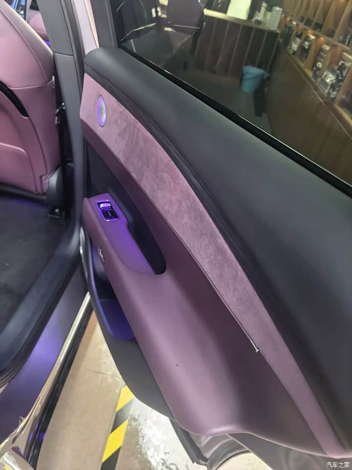 内饰我拿的是极光紫,坐进来那种氛围不一样,深一点的紫,光线打上去有层次,皮革和翻毛皮的包裹摸起来软,新车异味也不明显,前排的功能给得全,通风、加热、按摩在不同季节都能派上用场,长途背部不容易累,后排对我这个长腿来说坐垫略短一点,靠背角度能调但最躺时还是直一点,如果再后仰一点会更贴合,整体做工和用料把价格撑住了,缝线平整,按键回馈清楚,日常把玩这些细小的触感也能增加好感。