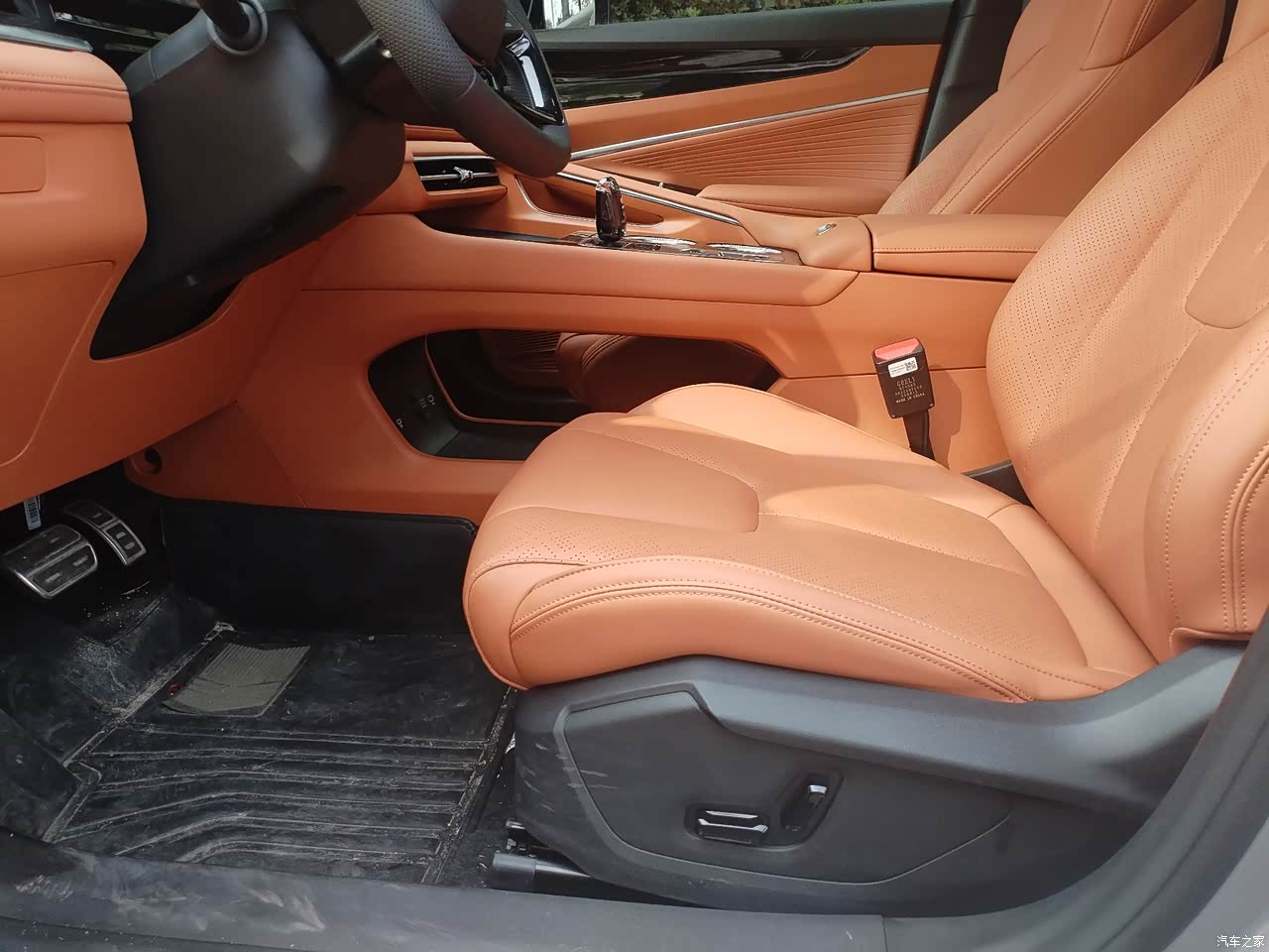 内饰的皮质座椅显得特别高级 ,设计的也挺有科技感 ,屏幕加上所有的按键做工加在一起也很有文文静静有内涵的感觉 ,不像有的车设计的廉价感或者是粗犷感十足 。感觉无论是从颜色的搭配上来说, 还是材质的选择还是中控的布局来说都是非常的用心的, 跟现在的新能源车比丝毫不落伍 。