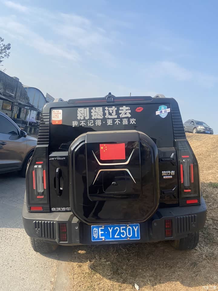 这辆黑武士捷途旅行者最让我满意的,就是它把硬派气场和我的生活态度完美融合。哑光黑的机甲车身自带生人勿近的酷感,走在路上回头率直接拉满。车尾那句“别提过去,我不记得·更不喜欢”的贴纸,是我对生活的态度宣言,再配上备胎罩上的中国红旗,硬派里又多了份热血浪漫。🤣🤣 开它出门,无论是城市通勤还是周末进山撒野都特别省心。宽大的车身和高离地间隙,过坑洼路面毫无压力,四驱模式应对轻度越野也游刃有余。车内空间宽敞,后排坐三个成年人都不挤,后备箱能轻松装下露营装备和行李箱🧳它不只是一辆车,更像我的移动堡垒。既能陪我穿梭在城市的钢筋水泥里,也能带我去看郊外的落日与星空。每次看到它静静停在那里,都觉得这就是我想要的生活伙伴:够野、够飒,还懂我的脾气。