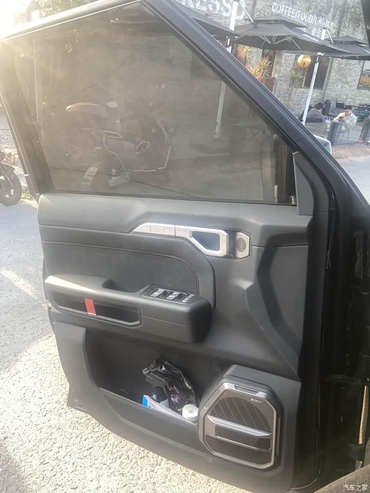 这辆捷途旅行者的黑武士外观,是我当初一眼就爱上的理由。哑光黑的车身在阳光下泛着细腻的光泽,机甲风格的硬朗线条从车头贯穿到车尾,每一处棱角都透着生人勿近的气场。车头的“JETOUR”字母标识极具辨识度,熏黑的矩形大灯与格栅融为一体,下方的越野前杠自带护板,原厂就自带改装范儿,省了后期折腾的麻烦。侧面的线条方正硬朗,悬浮式车顶搭配黑色轮眉和侧踏板,既强化了越野属性,又让车身比例更显协调。19寸的熏黑轮毂配着全地形轮胎,视觉冲击力直接拉满😛😛😛最让我满意的是车尾设计,外挂式备胎罩上我贴了一面中国红旗,黑红撞色让硬派感里多了份热血。“别提过去,我不记得·更不喜欢”的贴纸,刚好契合我想要的随性态度。车顶的行李架和黄色示宽灯,既是实用配置也是点睛之笔,让整辆车在视觉上更显高挑🤩🤩每次停在路边,都有人忍不住回头多看几眼。它不只是一辆车,更像我的移动名片,把“够野、够飒、够个性”的标签直接焊在了身上。