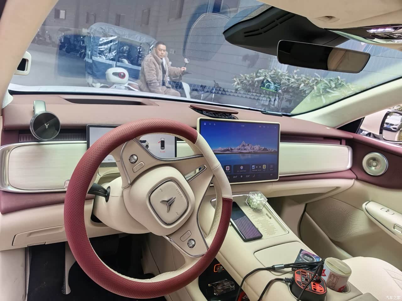 内饰是旭日红,坐进来第一眼是热度和亮度,皮面触感细,中控台一条木纹饰板横着铺,氛围灯在晚间点起来,舱内环境柔,黑内饰那种压抑感不见了,浅色带来的清洁任务要多做几次,家里有小朋友,零食渣和鞋印要勤快处理,做工用料触手可及的地方都是软的,新车味道压得住,这部分体验顺。