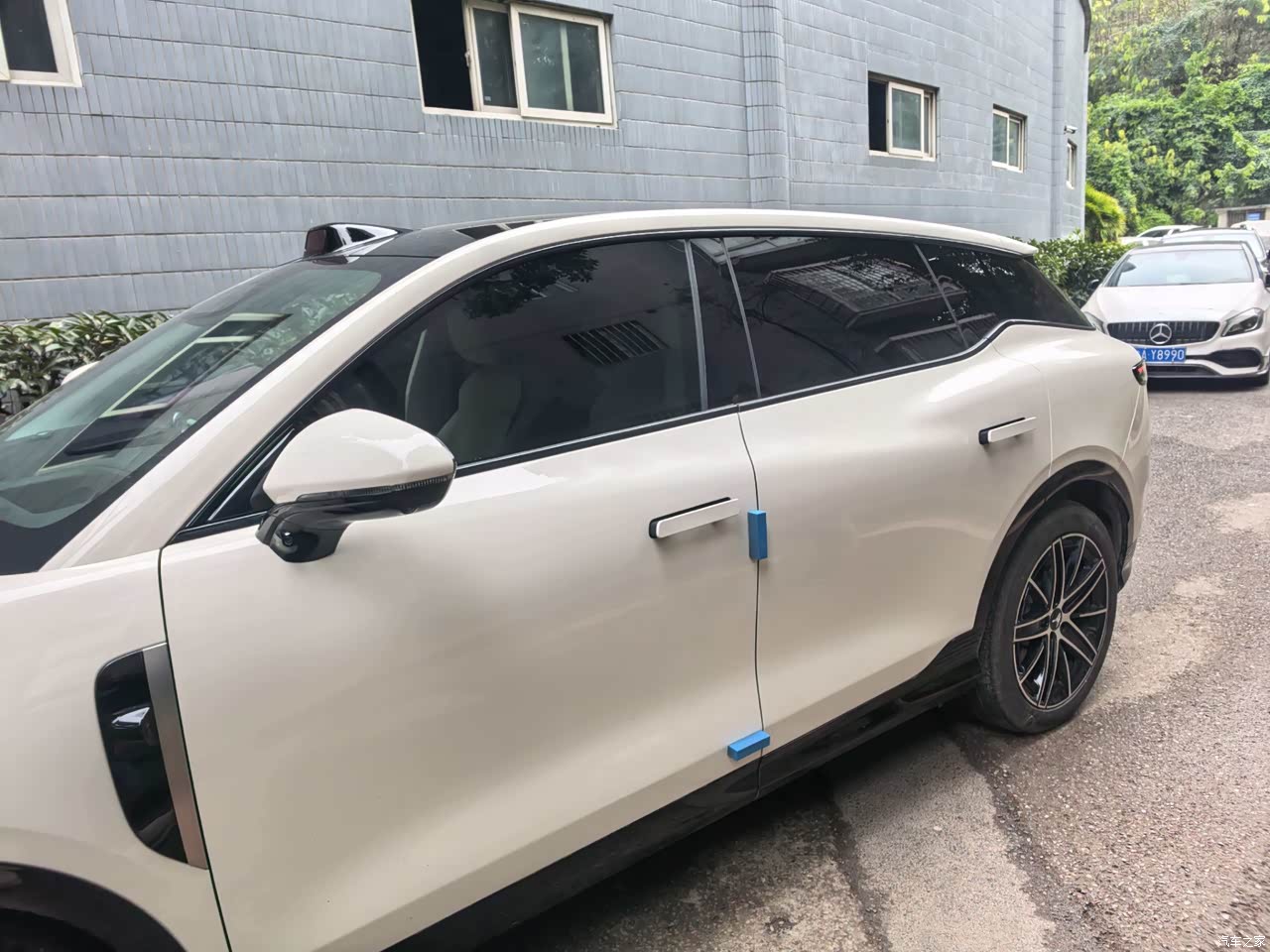 外观我选杜若白,珍珠白的底色在阳光下泛一点细闪,车身线条拉得顺,隐藏把手和无框门装上去,侧面看过去干净,前脸的可编程灯幕,点亮有灯语,夜里解锁那一下挺有仪式感,街边反光玻璃上能看到自己的车灯在动,不同人看法不同,有人偏机械的审美,更喜欢克制的前脸,我这边接受度高,开出去辨识度确实到位。