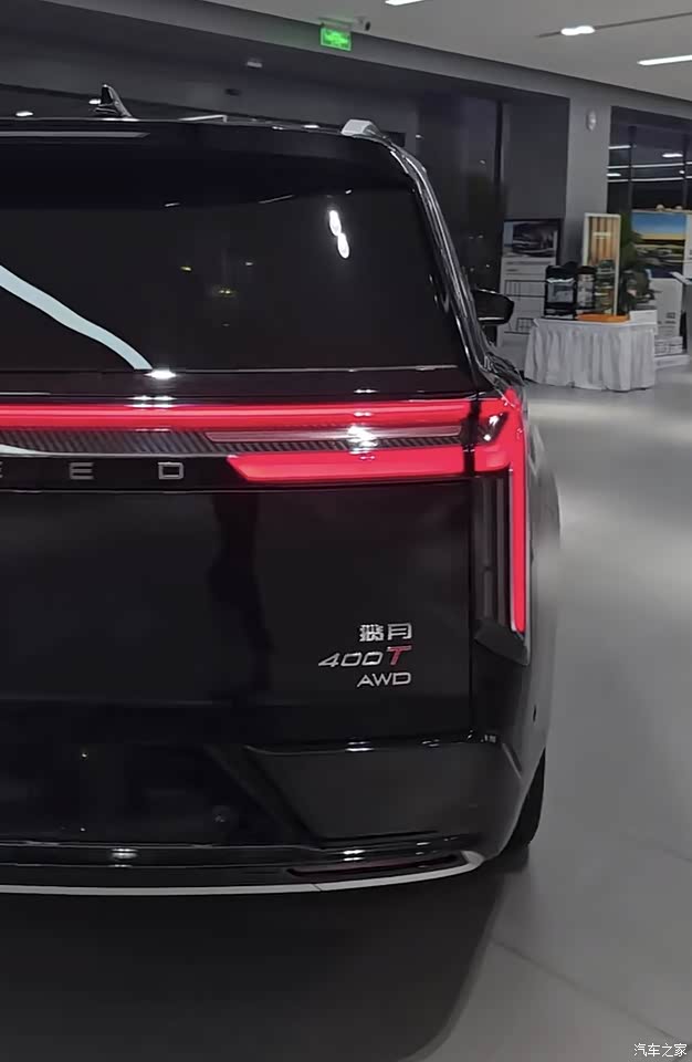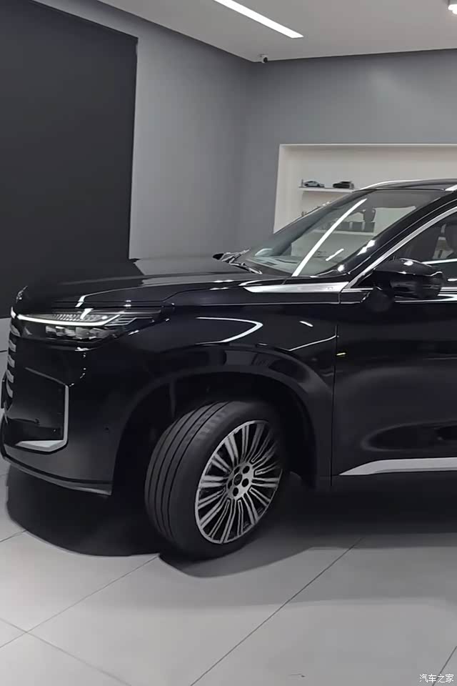 外揽月的外观设计呈现出明显的“硬派”风格,车头采用大尺寸八边形格栅搭配横向镀铬饰条,气场强大,矩阵式大灯造型锐利,夜间点亮效果极具辨识度。车身侧面线条流畅,20英寸轮毂提升了视觉冲击力,悬浮式车顶设计增添了几分时尚感。车尾贯穿式尾灯设计精致,配合双边共两出排气布局,整体造型稳重且不失力量感。不过,车头部分的设计较为个性化,审美上可能存在两极分化,我个人更偏爱车尾的协调与霸气。