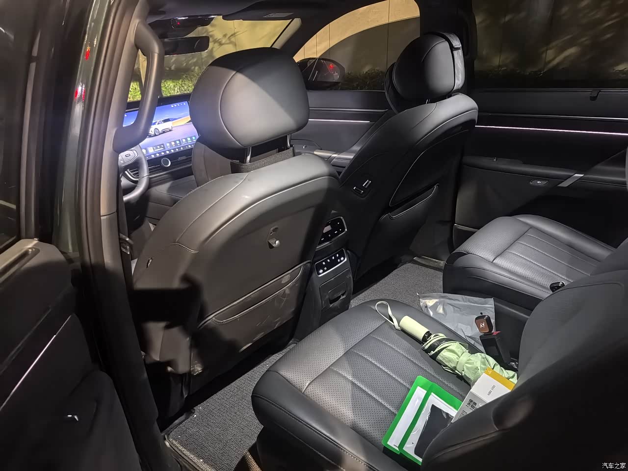 内饰用了全黑,耐脏,孩子爬上爬下的脚印手印擦一擦就好,布局简洁,没有太多装饰线条,手能摸到的位置像中控台和门板软包比较多,官方叫云感亲肌面料,手背贴上去柔一点,整体豪华感如果和二三十万的合资比细节上会差半步,氛围灯是一道细线,存在感弱一点,想着价格把预算更多给到空间和座椅功能,这个取舍也能理解。