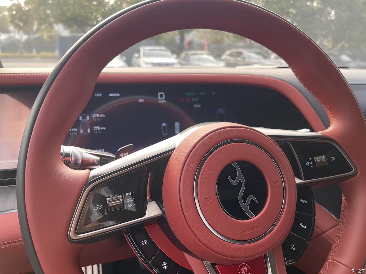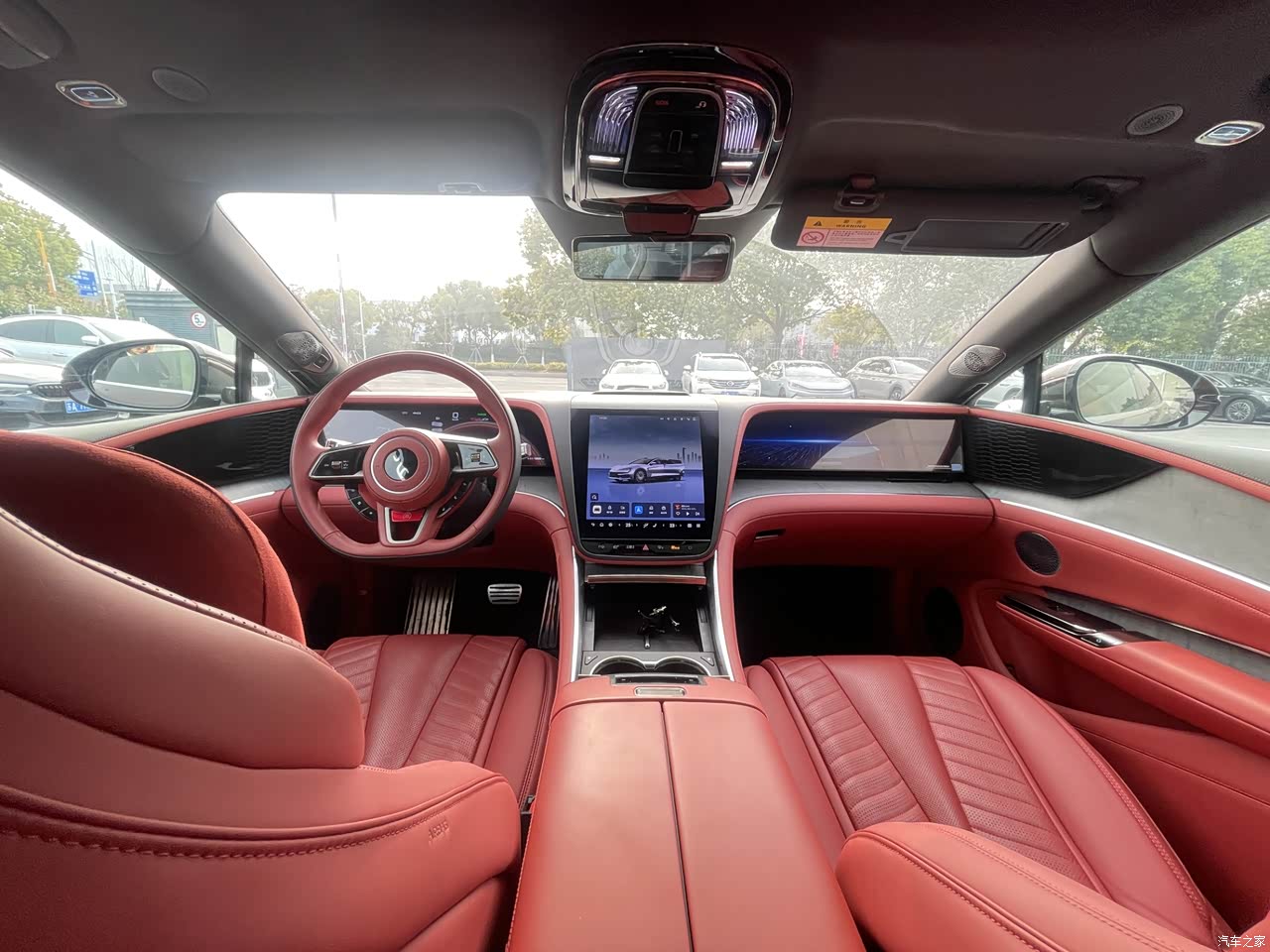 内饰的豪华感没话说,大面积的Nappa真皮包裹,摸起来手感特别细腻,还有真木门板和碳纤维饰板点缀,档次感一下子就上来了。我选的是红色内饰,虽然当初更想要浅灰色,但实际用下来发现挺耐脏的,而且质感很符合豪华车的定位。 座椅舒适性很好,电动调节加上通风、加热、按摩功能,不管是日常通勤还是跑长途,都不会觉得累。12.8英寸的OLED曲面屏看着很有科技感,界面布局清晰,操作也顺手。车内的氛围灯有127种颜色可以选择,晚上开车的时候氛围感拉满,孩子特别喜欢摆弄这个功能。 不过内饰也有小遗憾,主要是物理按键太少,很多常用功能都需要在屏幕上操作,开车的时候偶尔会分心。